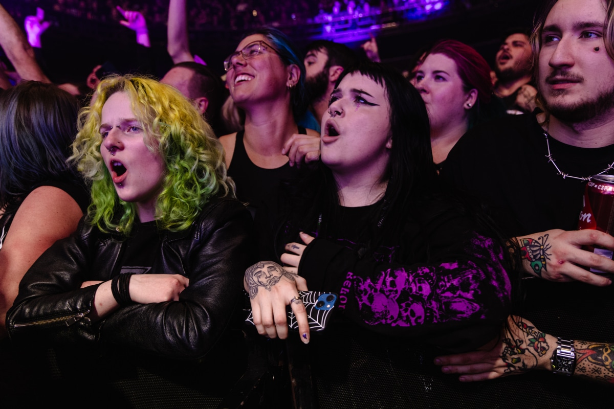 As the clock approached 9:15 pm, the diverse crowd at MTELUS eagerly awaited the headlining act – Beartooth. The concert’s demographic spanned generations, from a mother with her child to an older gentleman and a multitude of attendees in their 20s to 40s. The unified chant of the “Ole Ole Ole” anthem, accompanied by the thunderous resonance of AC/DC’s “Thunderstruck,” set the stage for a night of musical intensity.