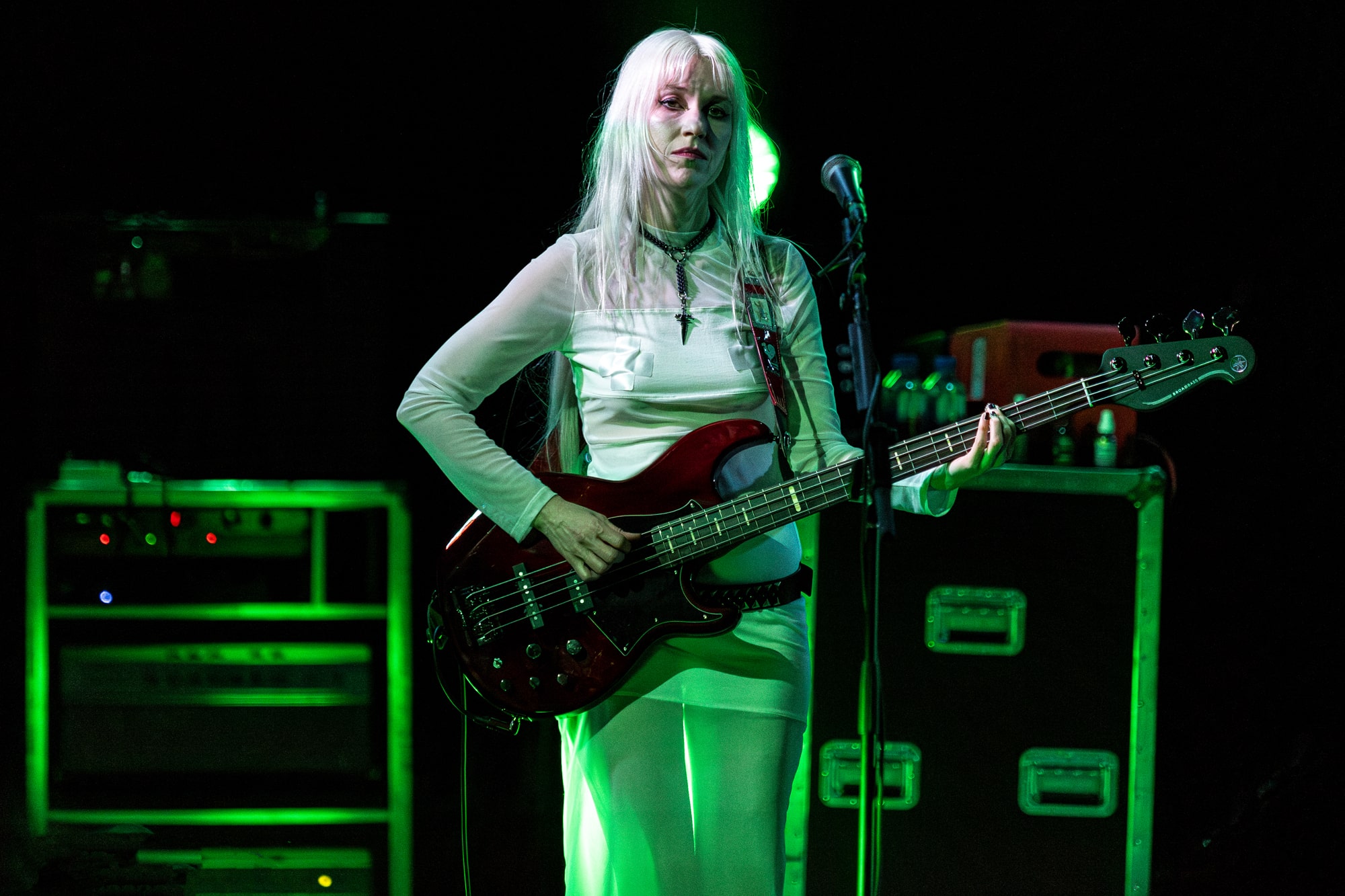 After their summons back to the stage, Billy declares, “Thank you so much for a beautiful evening, we have a special guest—Montreal’s own, my former bandmate, Melissa Auf der Maur!” There are huge roars all around as Melissa strides out and relates how she met Billy on 23 July 1991 at Foufounes Électriques (and ultimately was a full-time Smashing Pumpkin from 1999–2000). She looks like she never left as she takes over bass duty on a thunderous rendition of “The Everlasting Gaze,” the noise threatening to blow the roof off Théâtre Beanfield.