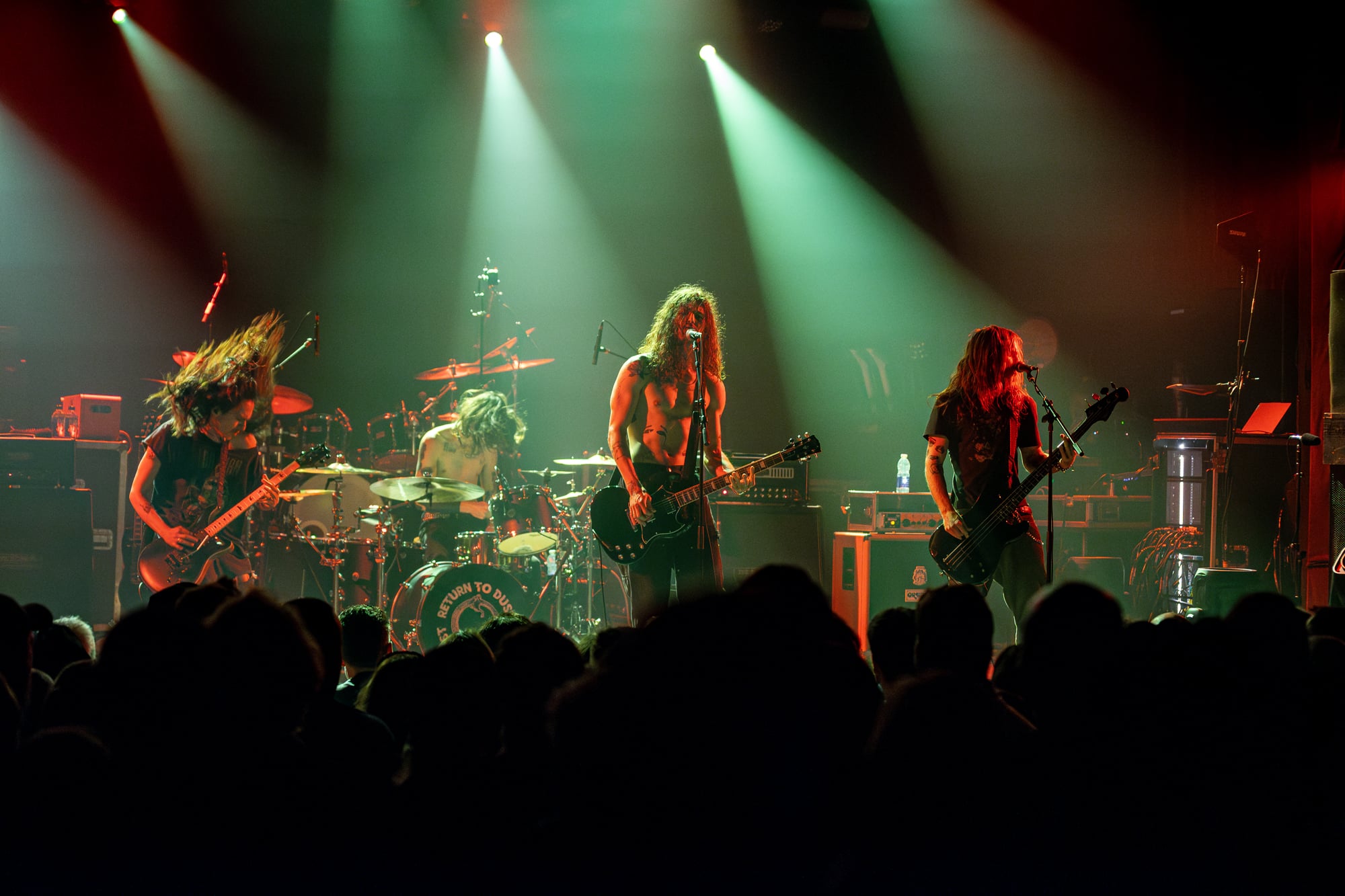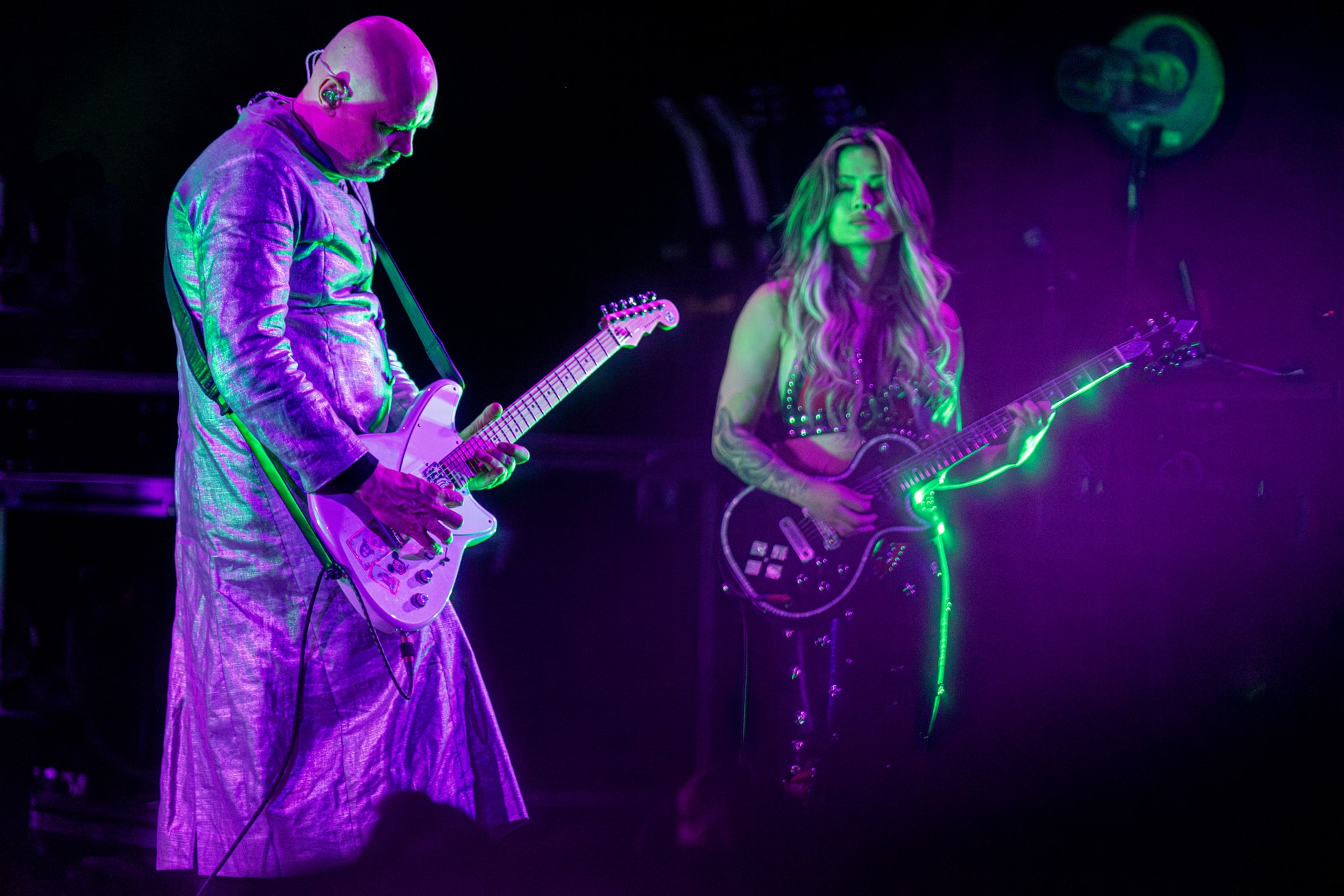 But you have to earn it! The first half of the two-hour show digs deep into the Pumpkins archives, “Glass Theme” from 2000’s Machina II kicking off the set in a blazing rock-out, followed by the filthy riffs of “Heavy Metal Machine,” with harmonies added by touring bassist Jenna Fournier (aka Kid Tigrrr), who bears more than a passing resemblance to original Pumpkins bassist D’arcy Wretzky. She takes vocal lead on a cover of Nancy Sinatra’s “You Only Live Twice,” which leads to the best line I overheard all night from a guy next to me: “That lick sounds like Robbie Williams!”