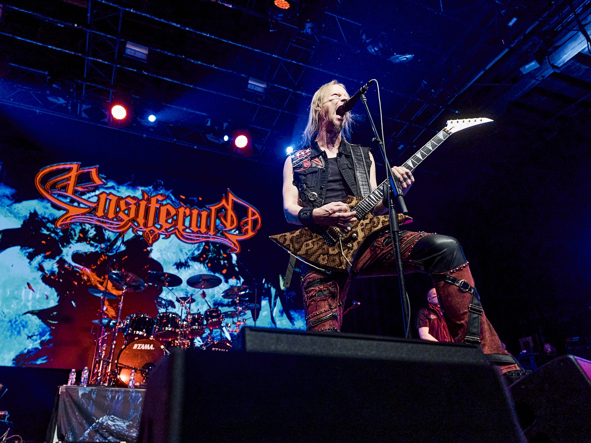 After what couldn’t have been much longer than a 10-minute changeover, Ensiferum roared onto stage. I really dug these guys in college but haven’t caught up with them since an underwhelming Montebello Rockfest performance about eight years ago. Thankfully, they felt like an entirely new band that night, despite playing a similar, career-spanning setlist. I can’t quite place why, but the incredible energy in MTelus was certainly a factor. Seriously, the crowd was beaming with joy throughout Ensiferum’s entire set. They cheered and chanted along with such intensity that you’d think these were the night’s headliners. Occasional guest appearances from Blind Guardian frontman Hansi Kürsch got even more folks engaged, as he sported the band’s sniper crosshair facepaint and delivered some jaw-dropping high notes, which brought another dimension to Ensiferum’s punishing brand of folk metal. With both literal and figurative horns in the air, the Montreal crowd sang and moshed something fierce. The band was enjoying every moment and disappeared as quickly as they arrived after a unifying performance of “In My Sword I Trust.”