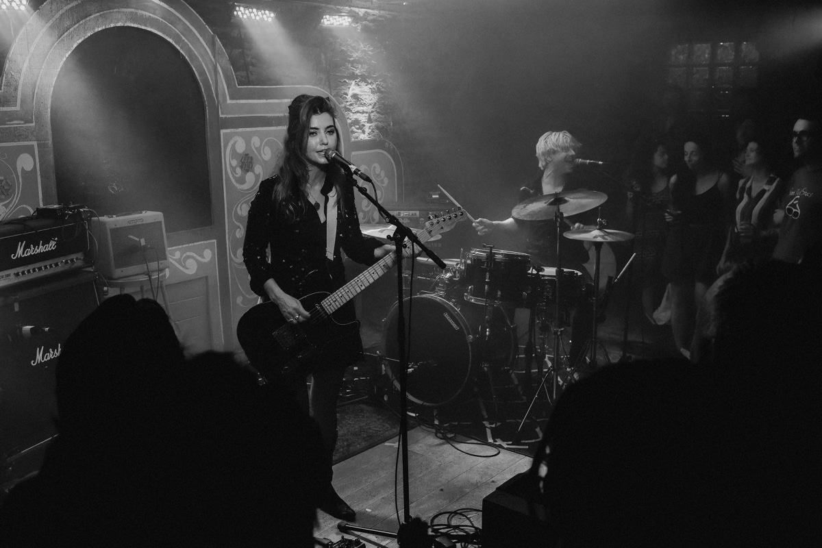 Hailing from Rochester, NY, Lyell is charged with warming up the packed crowd tonight; not that anyone needs warming up in the inferno that is Bar l’Escogriffe in the summer! It’s her first time playing in Montreal, and it’s a memorable debut. Hair flails as she prowls around the stage, with a heavy rock sound that almost borders on nu-metal (in a good way). A delicate cover of Mr. Brightside is a welcome change of pace that elicits a huge singalong around the room and warms up my vocal cords nicely for what’s to come.