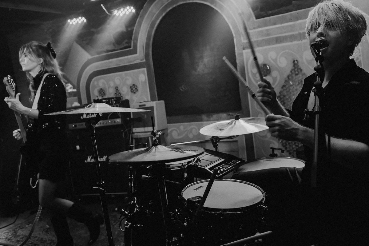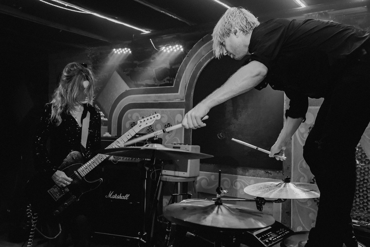 This year marks 15 years since the UK duo Blood Red Shoes released their breakthrough debut record, Box of Secrets, and tonight’s set draws fairly equally from all six of their studio albums, showcasing the evolution of their sound across their discography. Elijah opens the set, with drummer/singer Steven Ansell beating away at an electronic drum pad embedded within his regular kit, and sets a suitably moody tone in conjunction with the smoke machine and the dim basement lighting of the room. Sucker follows a similar trajectory, as does Morbid Fascination, from their most recent Ghosts On Tape record, which closes out the main set in a similar sultry manner.