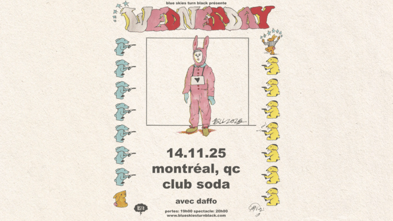 When Daffo takes the stage at Club Soda in Montreal on November 14th, opening for Wednesday, they’ll be experiencing a full-circle moment that few emerging artists get to savour. “I think the coolest thing about it is that I will be playing for an audience I have been a part of before,” says Gabi Gamberg, the LA-based artist behind the Daffo moniker. “I’ve been in the mosh pit at a couple Wednesday shows, it’s going to be really cool to be the one on stage opening this time.” The pairing makes perfect sense: both acts traffic in unflinching emotional honesty, though Daffo‘s approach leans into a more intimate, frenetic energy. “Also, I’m stoked to get to hear Wednesday play every night. ‘Bleeds’ is turning out to be my favourite new record of the year.”