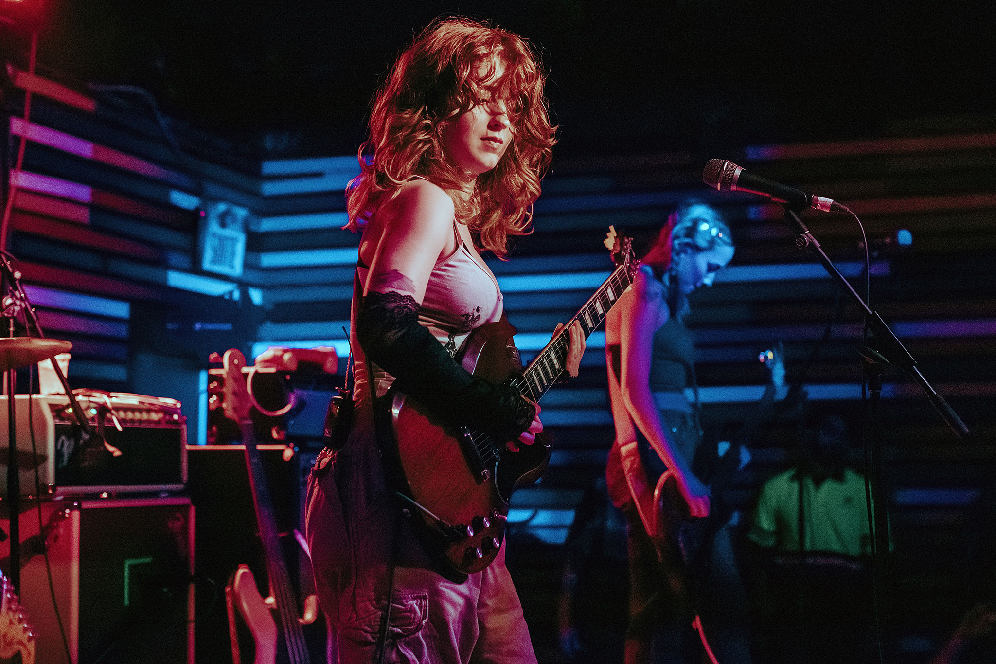 Even though Chloe warned the crowd that she was suffering from a fever, I swear you would’ve never even known. Her voice was somehow still incredibly sounding, she never once faltered while on the drums. You’ve gotta have some crazy insane talent to be able to perform like that while enduring a fever. Kate Halter kept a high energy on bass, and danced around the stage while playing for the entire set. The stage presence Die Spitz have collectively is insane, they are an incredible unit of performers.