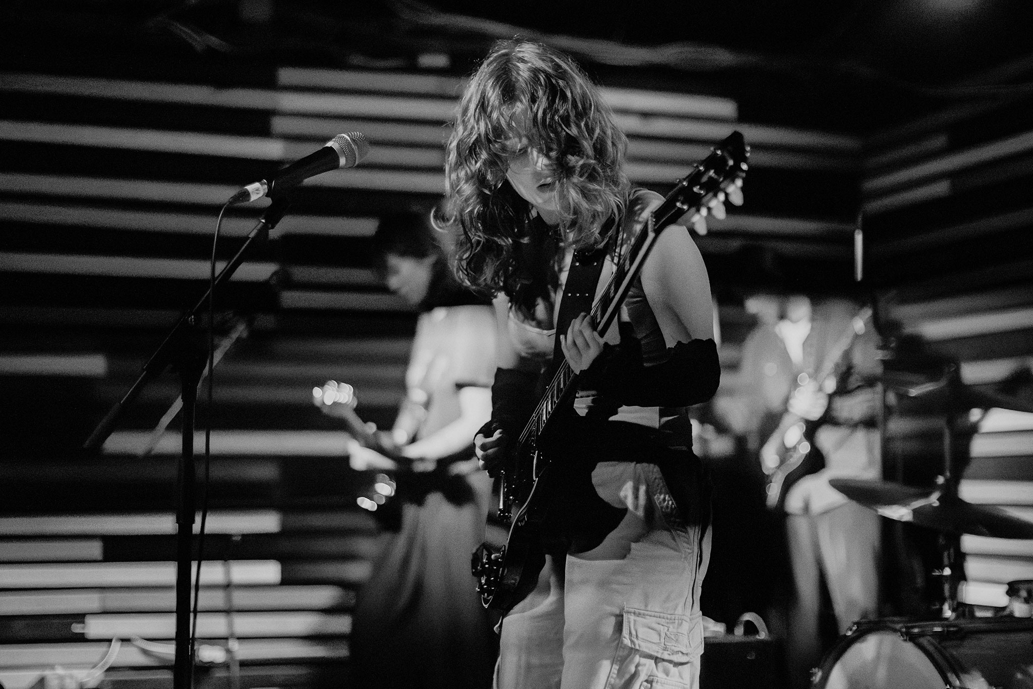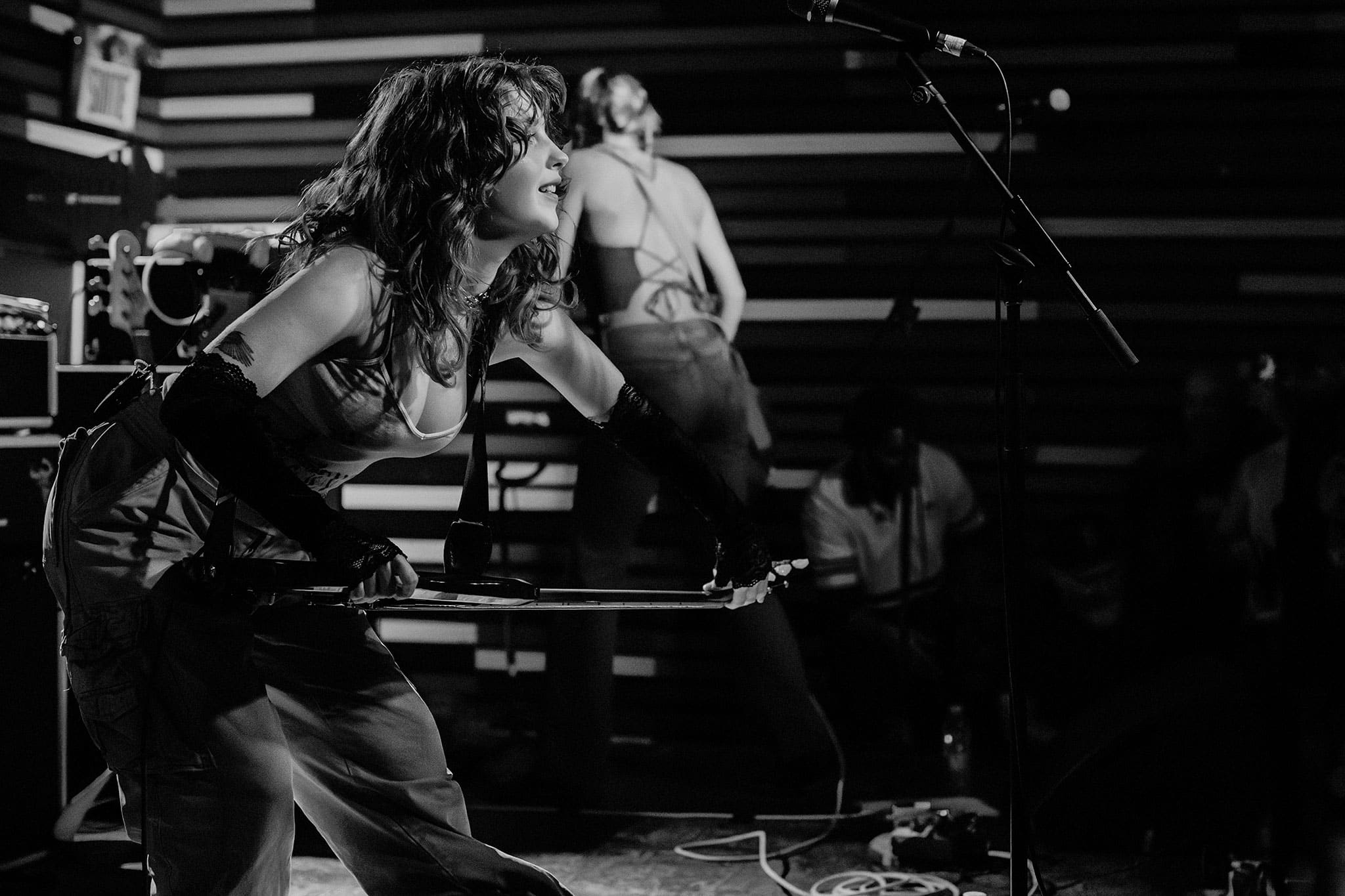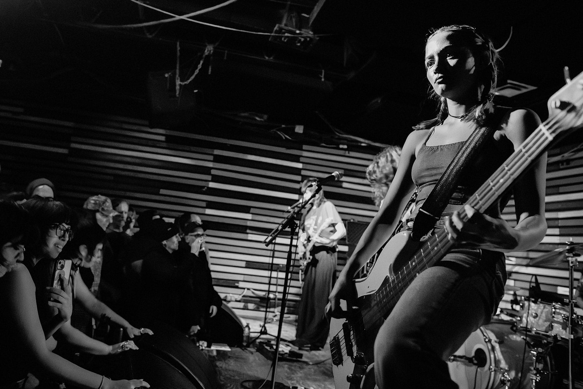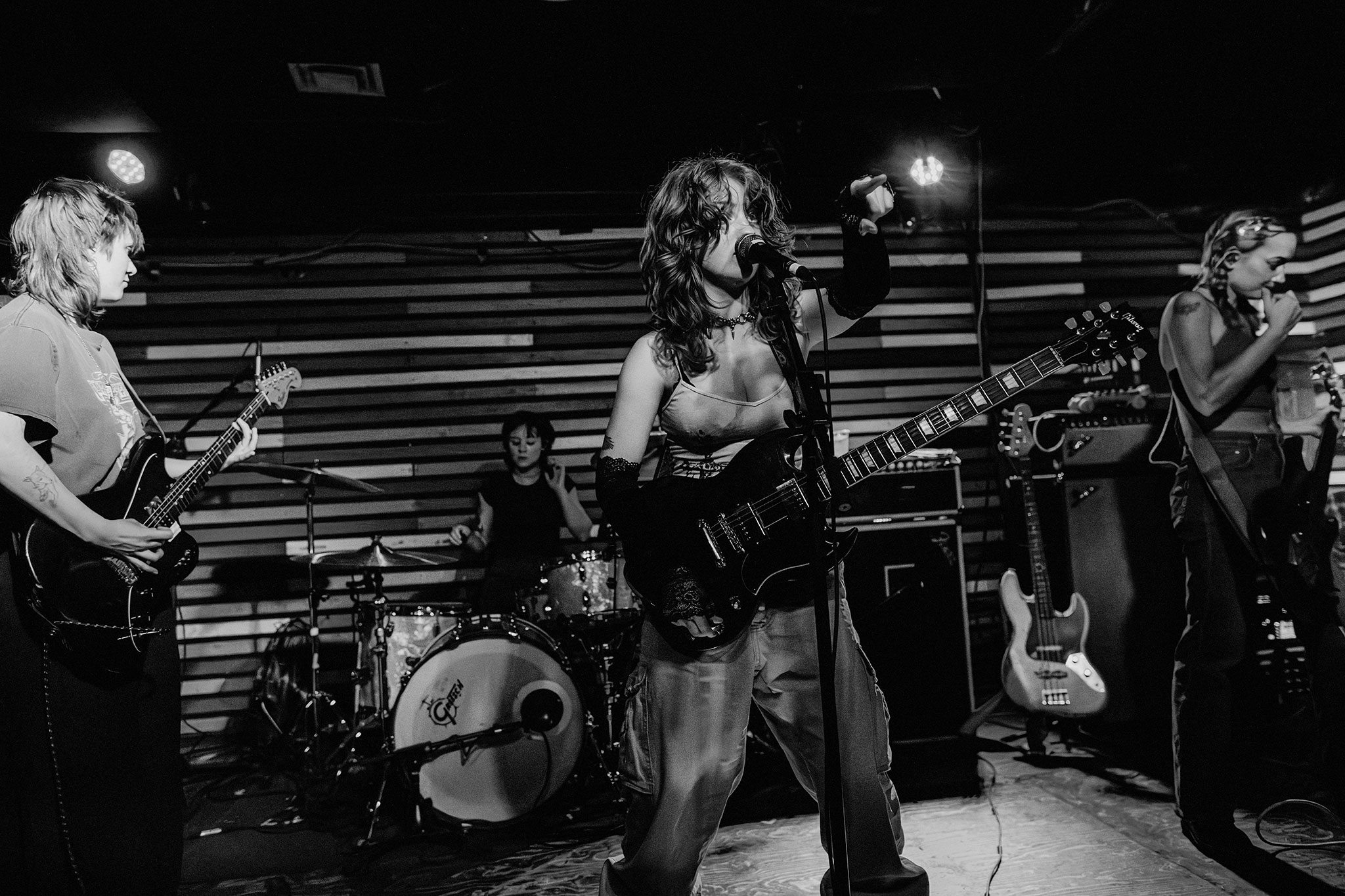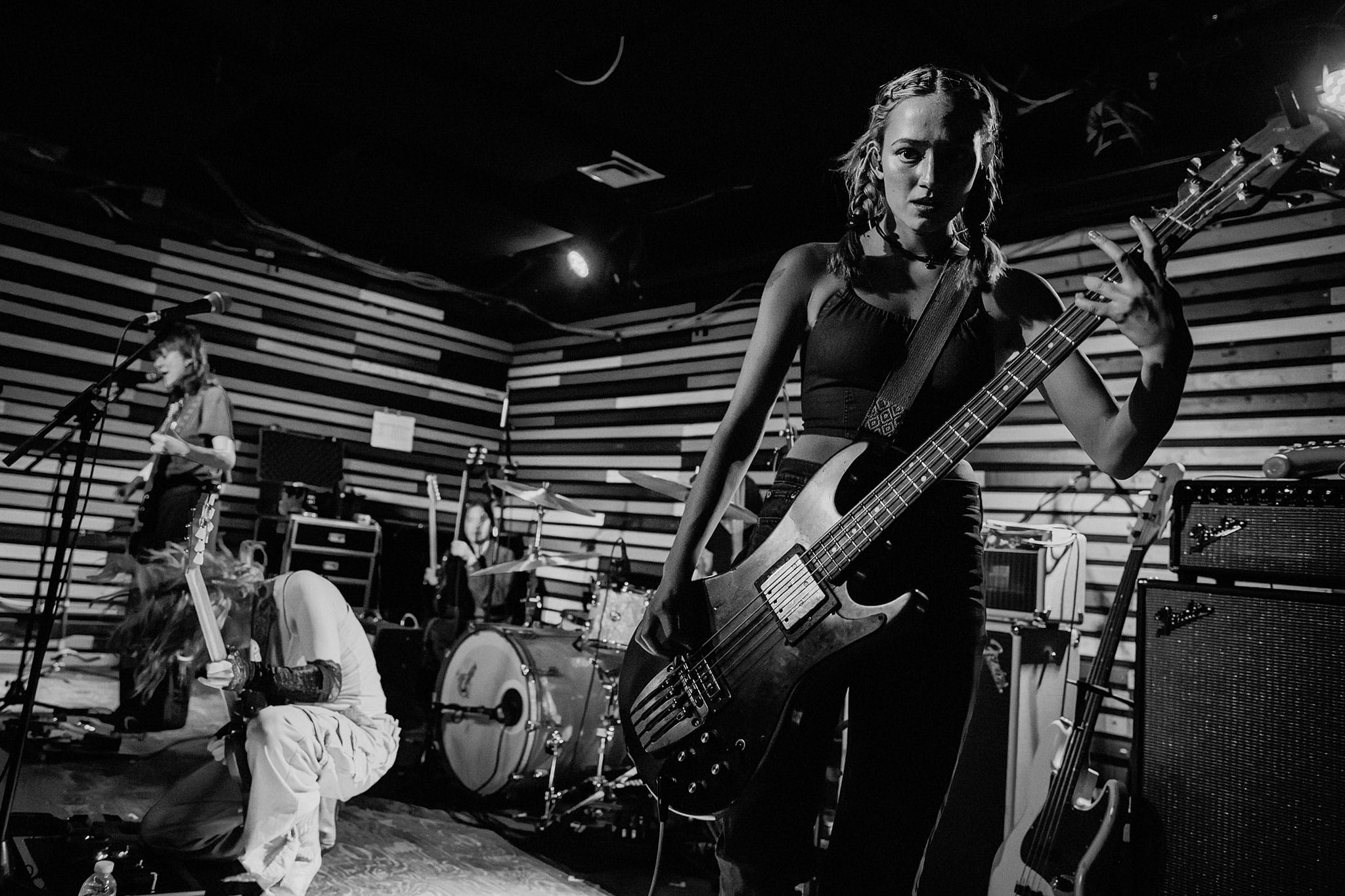 Die Spitz had a pretty stacked setlist planned, with songs like Down on It, My Hot Piss, Voir Dire, and Grip. Members Eleanor Livingston, Chloe de St. Aubin and Ava Schrobilgen frequently switched between vocals, guitar and drums. It kept the audience guessing, and offered different styles depending on who was leading.