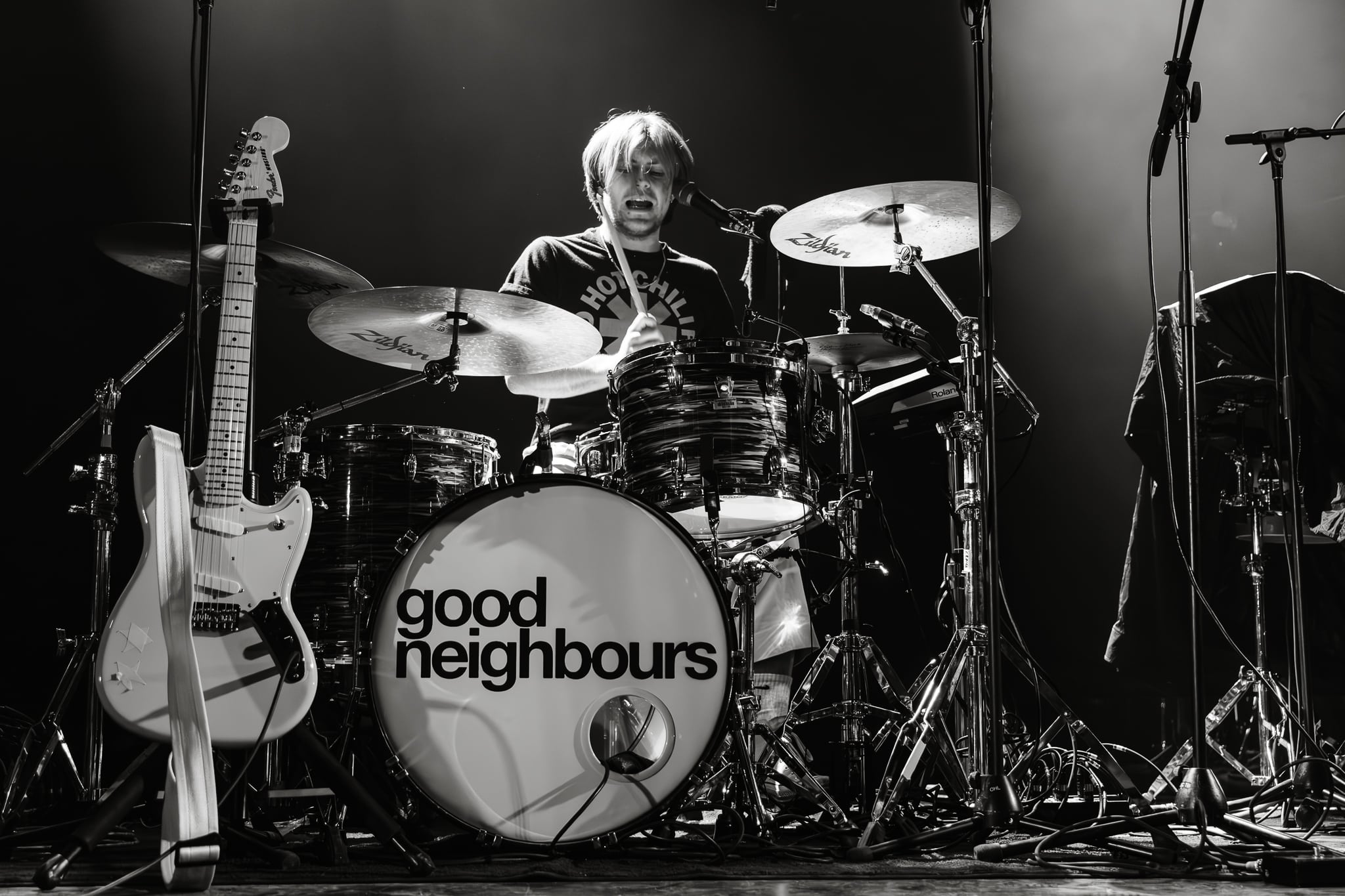 The band are certainly not one-trick ponies though; ear-worms like Coming of Age (from 2014’s Supermodel) and Sit Next to Me (from 2017’s Sacred Heart Club) illustrate how solid a discography the band have compiled over the years. Songs from last year’s Paradise State of Mind album are well received too, especially the dance funk of See You in the Afterlife and the squelchy synths of Glitchzig.