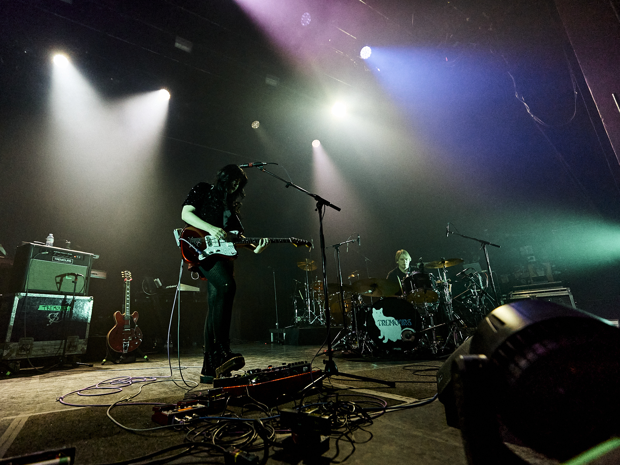 It’s opener Tremours’ first Montreal show. Lauren Andino’s Mazzy Star vocals float atop Echo and the Bunnymen riffs and propulsive ride and tom patterns. Pretty solid two-piece act. They are very welcome here any time.