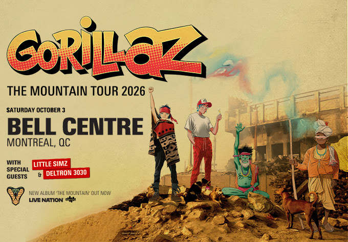 Gorillaz will play Bell Centre on October 3, as part of a 22-date North American arena run that marks the band’s first extensive tour of the continent since 2022. Little Simz and Deltron 3030 are confirmed as support. Tickets go on general sale Monday, March 9 at 10 a.m. via evenko.ca.