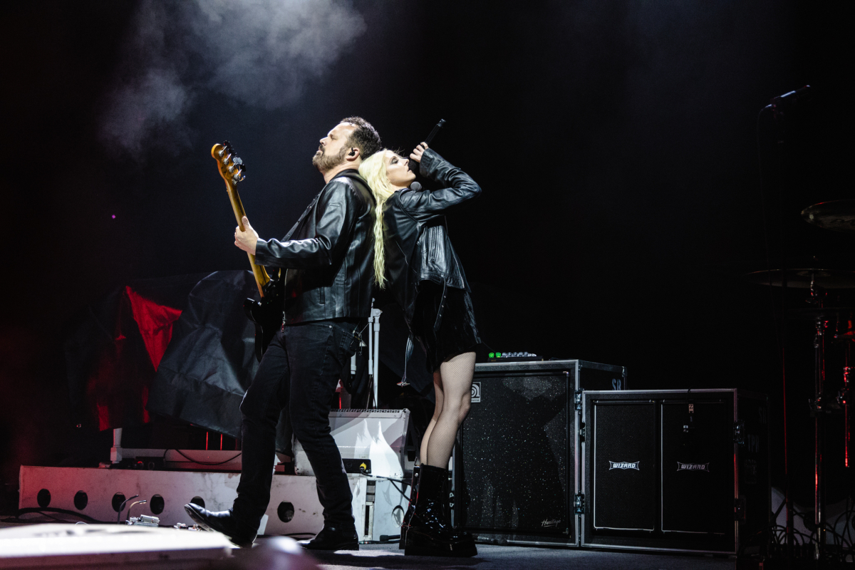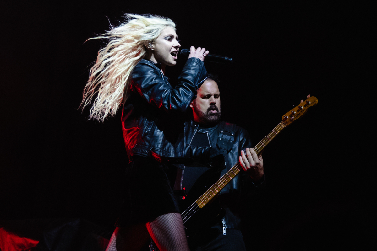 The Pretty Reckless wasted no time grabbing our attention and opened their set with “Death by Rock and Roll.” Taylor was gorgeous and full of fiery energy as she ran from one side of the stage to the other with her long platinum hair flying wildly. Dressed all in black with shiny combat boots, a short strappy dress and biker jacket (that flew off after the 2nd song), she struck some dramatic poses as she belted out fan favourites in her signature raspy voice.