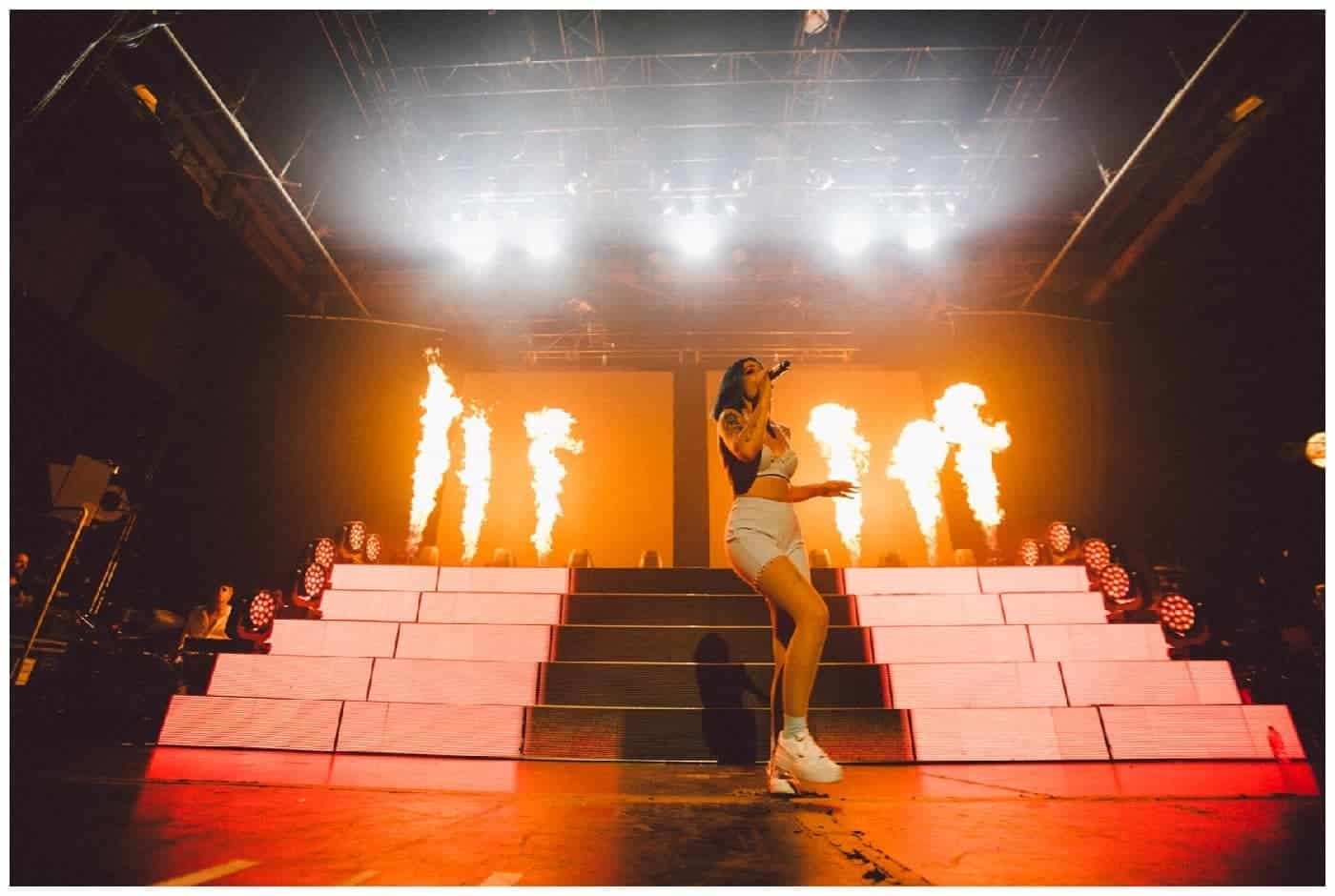 She continued to hype the crowd by performing two more songs from her first album “Badlands.” One of which is a personal favourite off that album. Afterwards she showed off her amazing vocal abilities by switching back and forth from her two released albums, all the while climbing up and dancing on her giant LED stairs. A screen wall showing breathtaking visuals of all the songs paired perfectly with the light show and occasional flamethrowers she had on stage.