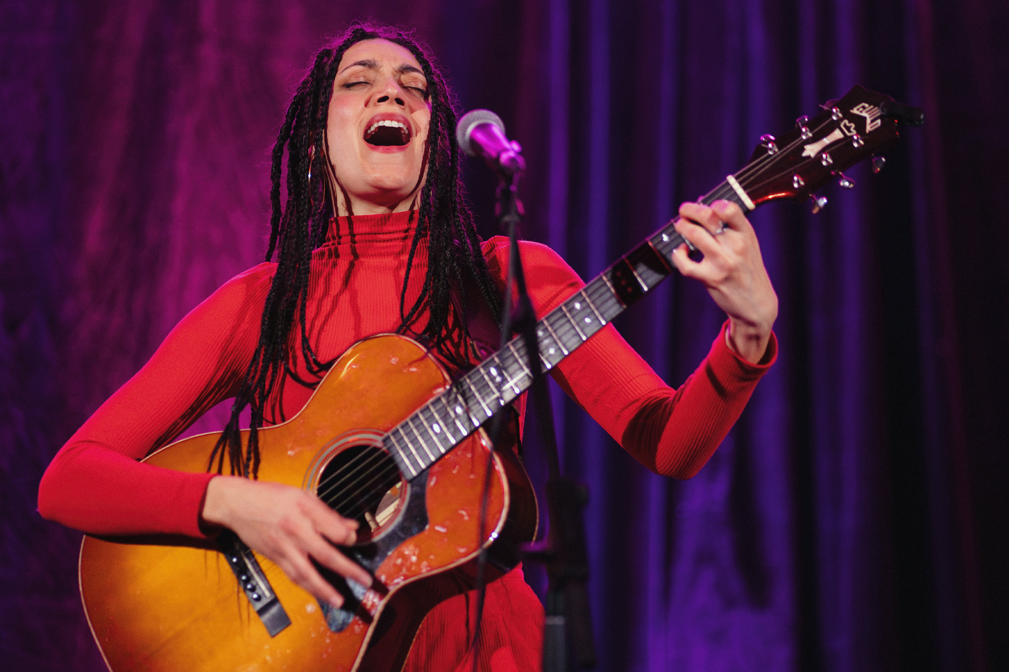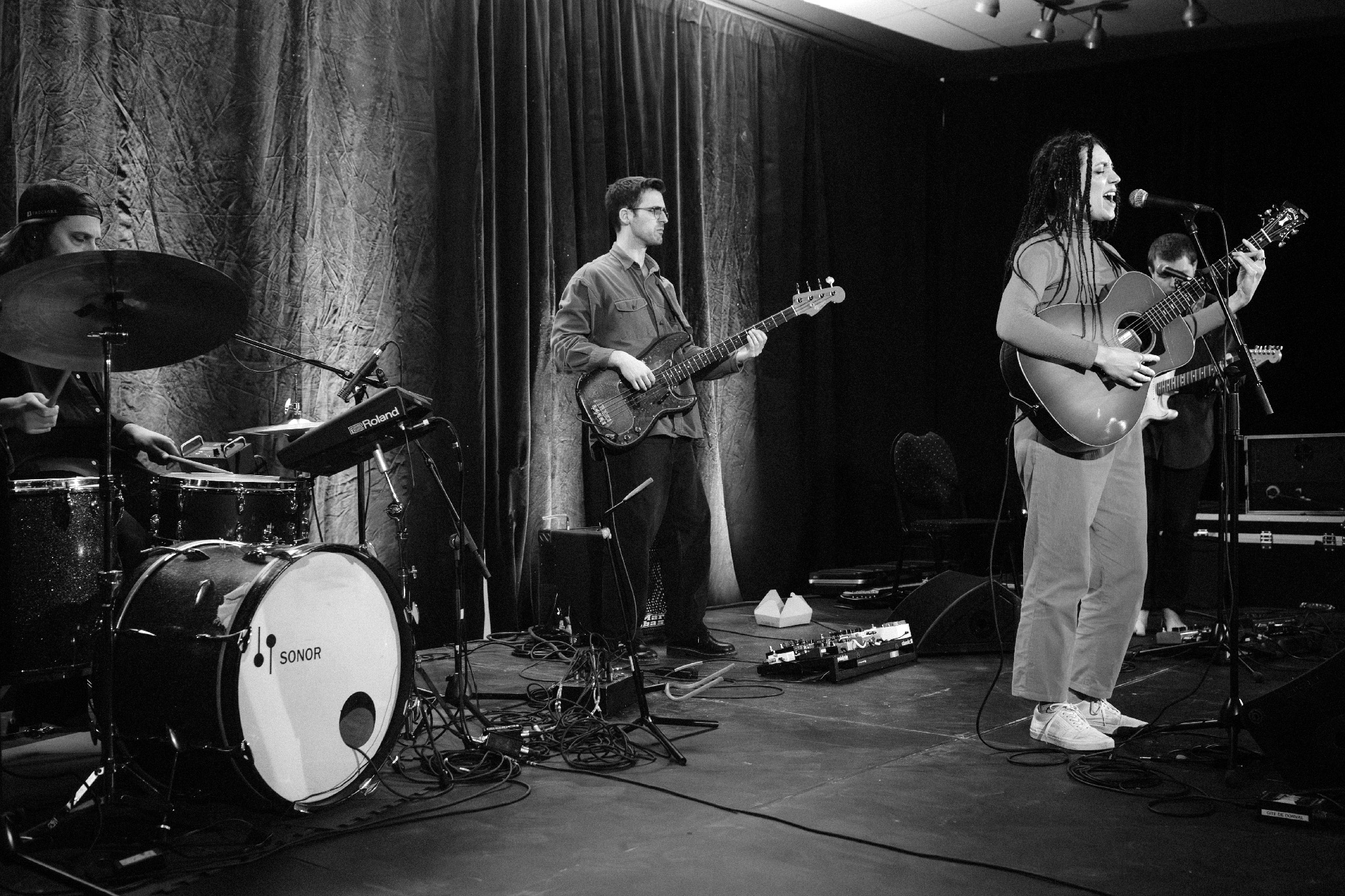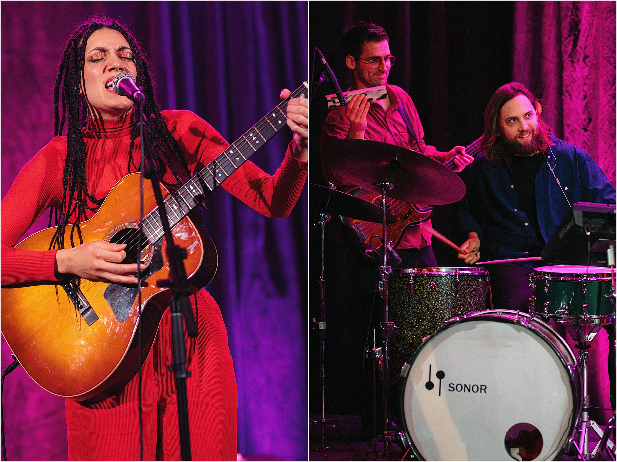 Things strip down another level altogether as her 3-piece band leaves the stage, leaving just Hanorah and her acoustic guitar for Skeletons, and after a 15-minute intermission, the open-mic vibe continues with just Maxwell on the ultra-mellow Emily, Funny Valentine, and New Orleans. Philip and bassist Etienne (I think that was his name, apologies if I get any of these wrong!) then return to the stage, and any chill vibes previously created are obliterated by a thunderous cover of Portishead’s Glory Box. Those distorted riffs, those thumping drums… it’s probably the loudest thing this library has ever experienced! An extended breakdown emerges with a deep wandering bassline, and Hanorah throws in some lyrics from Aretha Franklin’s (You Make Me Feel Like) A Natural Woman; it sounds awesome.
