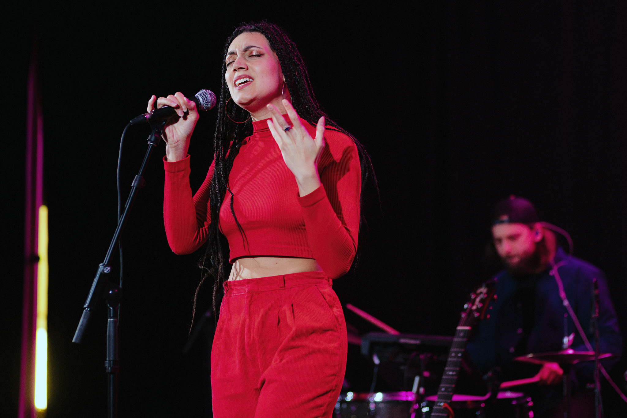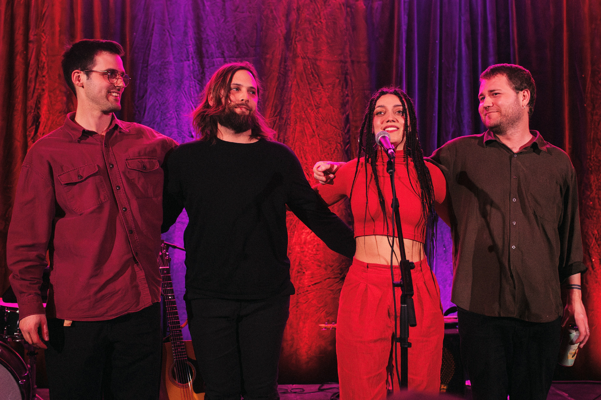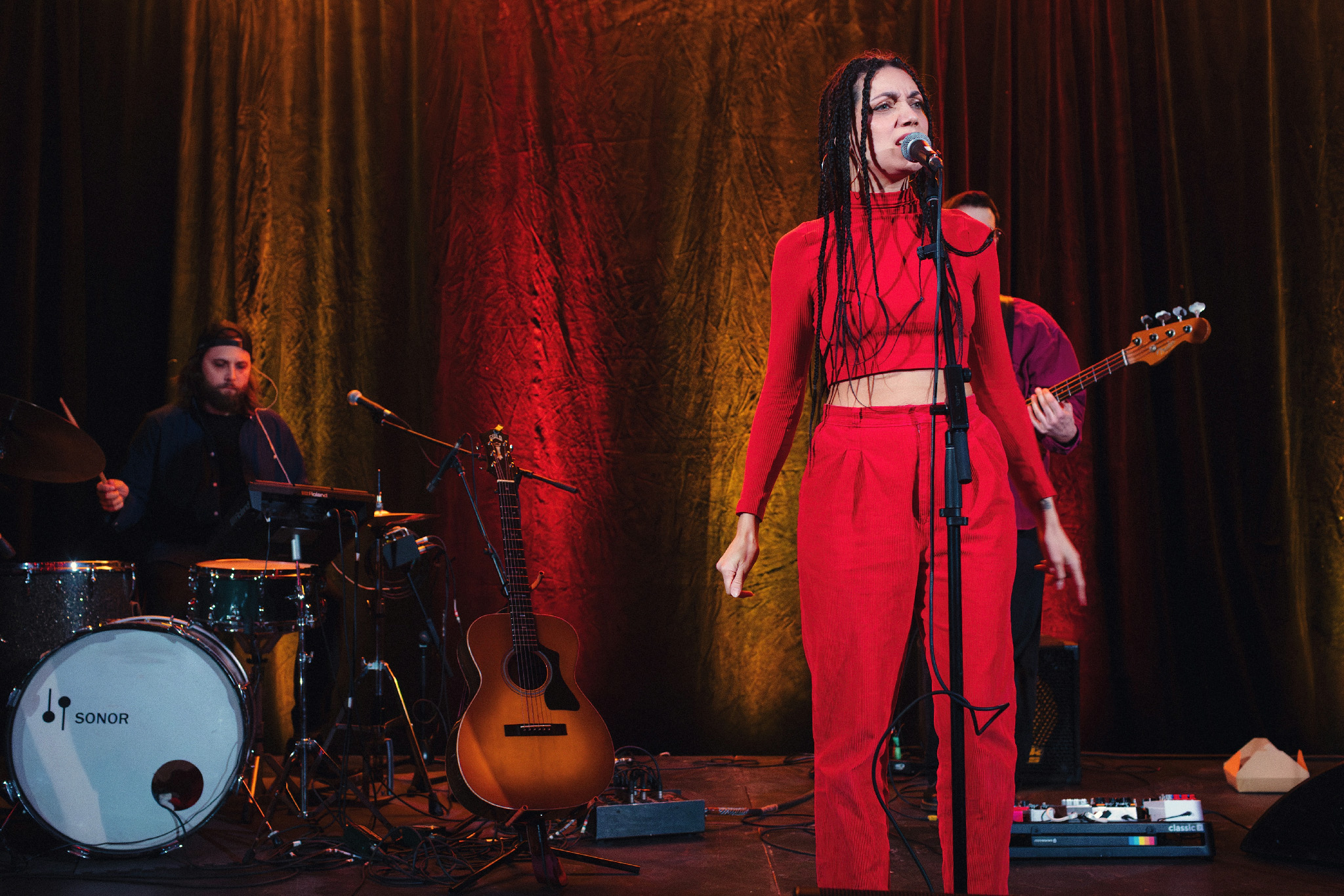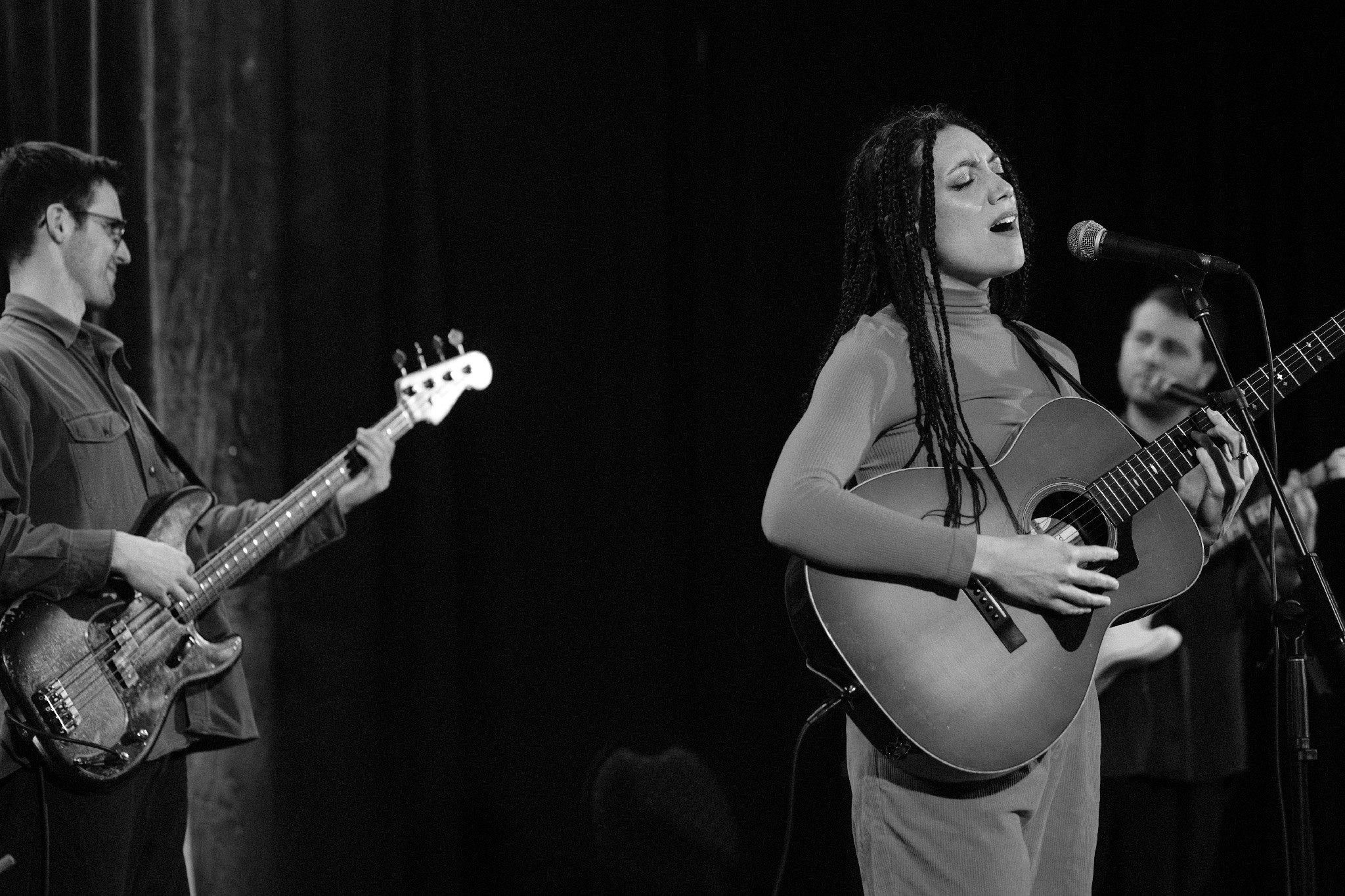 Things strip down another level altogether as her 3-piece band leaves the stage, leaving just Hanorah and her acoustic guitar for Skeletons, and after a 15-minute intermission, the open-mic vibe continues with just Maxwell on the ultra-mellow Emily, Funny Valentine, and New Orleans. Philip and bassist Etienne (I think that was his name, apologies if I get any of these wrong!) then return to the stage, and any chill vibes previously created are obliterated by a thunderous cover of Portishead’s Glory Box. Those distorted riffs, those thumping drums… it’s probably the loudest thing this library has ever experienced! An extended breakdown emerges with a deep wandering bassline, and Hanorah throws in some lyrics from Aretha Franklin’s (You Make Me Feel Like) A Natural Woman; it sounds awesome.