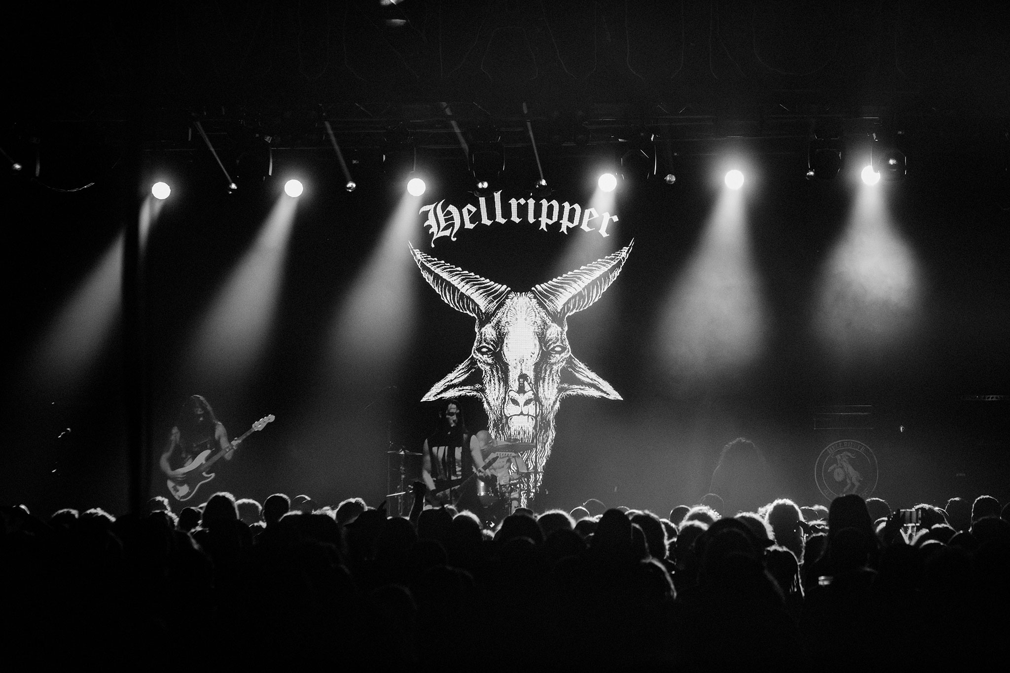Hellripper operates on two distinct tracks: the solo recording project and the live band, which for touring purposes includes guitarist Joseph Quinlan, bassist Andy Milburn, and drummer Max Southall. McBain treats the two versions of the project as fundamentally separate things. “When I’m recording, I like to be very deliberate with what I do, I like to experiment with new sounds and textures and I like to take time to craft the best thing I possibly can at that moment. It’s about enjoying myself first and foremost. The live side of things is where I embrace the chaos a little more, and I enjoy the unpredictability of a show. I want to have a good time, and I want the audience to have a good time.”