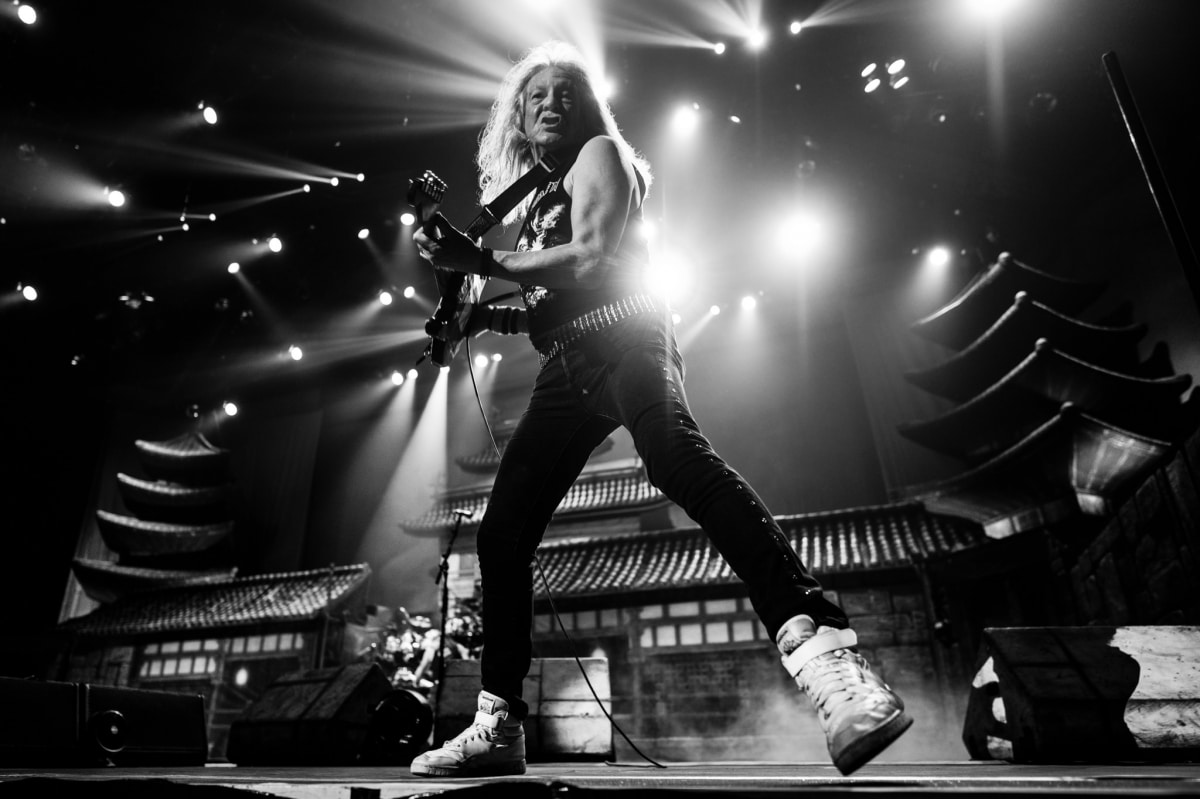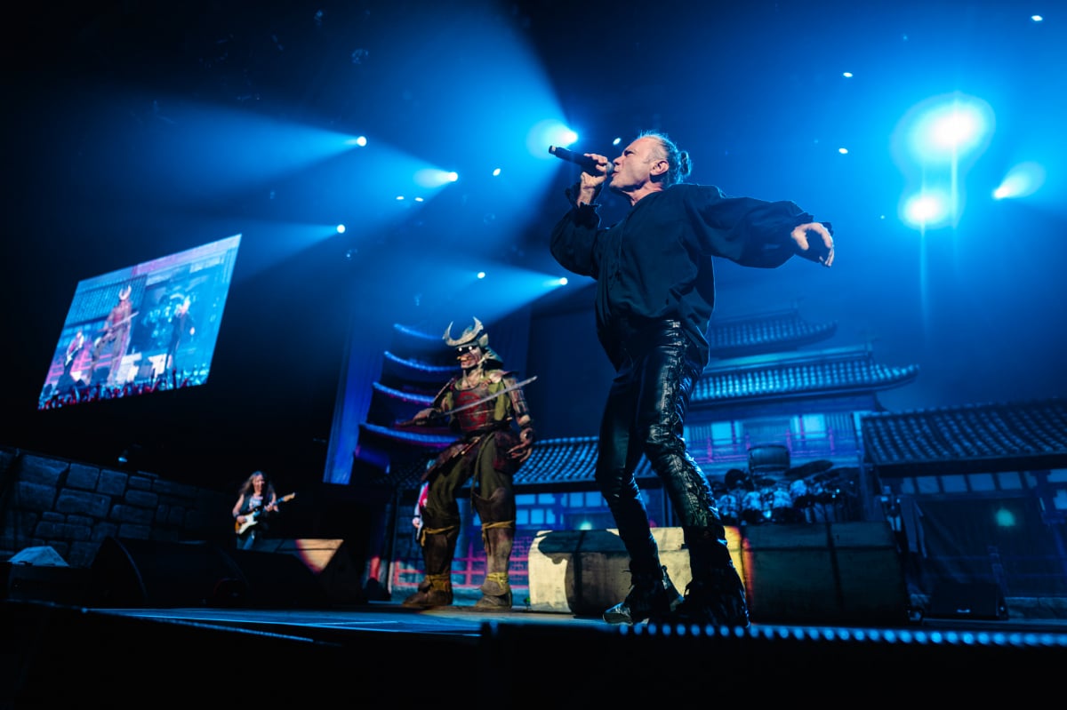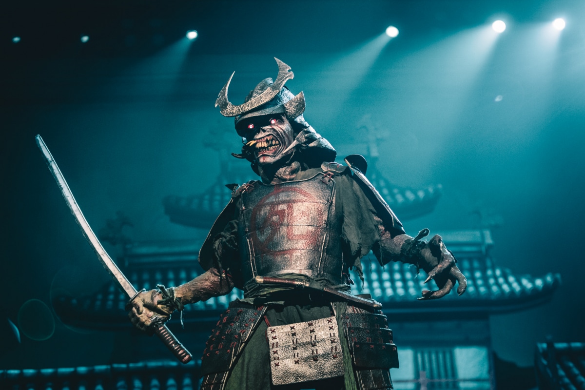 Many were dressed to impress with their favourite Maiden gear or Eddie masks. With anticipation at its climax, the lights turned off and Iron Maiden took to the massive stage. The crowd roared, and that roar didn’t stop until the end of the 2-hour spectacle! Let me tell you something, these fans were not disappointed; Iron Maiden came with a vengeance. A set composed of 15 songs and almost as many set design changes. Impressive, to say the least; they started with Senjutsu and Stratego, the first two songs of their 2021 album Senjutsu. The set was impressive, like you were in the yard of an old Japanese temple, the first song even included a cameo from Eddie wearing a samurai outfit with a katana. As impressive as that was, I would say the rest of the night was just so much more epic, pulling from their massive catalog of sounds, they played some classics like Fear of the Dark, The Number of The Beast and Run for the Hills.