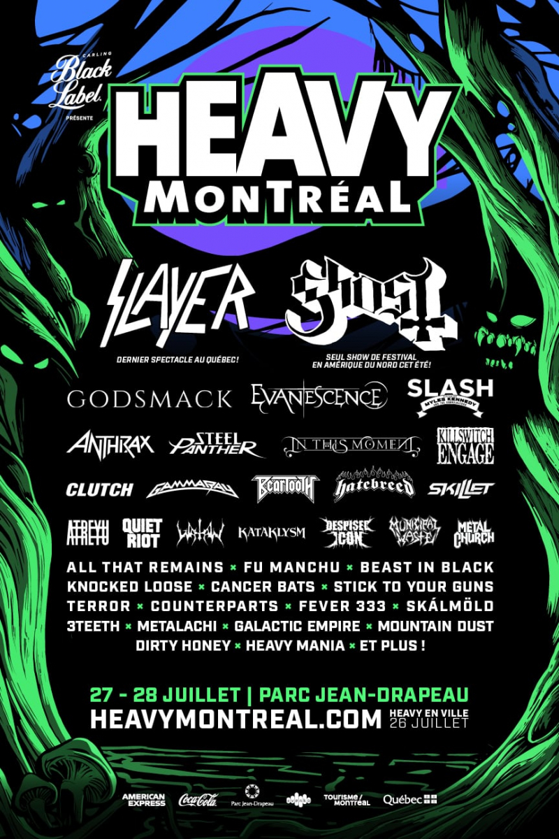 Before 2018 came to a close, Slayer announced they would headline the festival, marking their last-ever show in Quebec. Then, last week, the band inadvertently leaked much of the fest’s 2019 lineup! But now, the line-up has been officially confirmed by the promoters. More than 30 bands have been booked this year, including Ghost, with their only festival set in North America this summer. The line-up also includes Godsmack; Evanescence and Anthrax. Also, Slash featuring Myles Kennedy & The Conspirators, Steel Panther, Montreal’s own Despised Icon, Watain, Fever 333, Cancer Bats,In This Moment, Killswitch Engage, and many more!