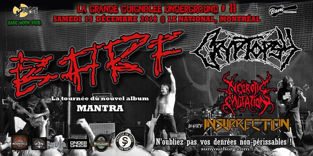 The band will play a few Canadian tour dates, including Montreal’s Le National on December 15 with Barf, Necrotic Mutation and Insurrection.