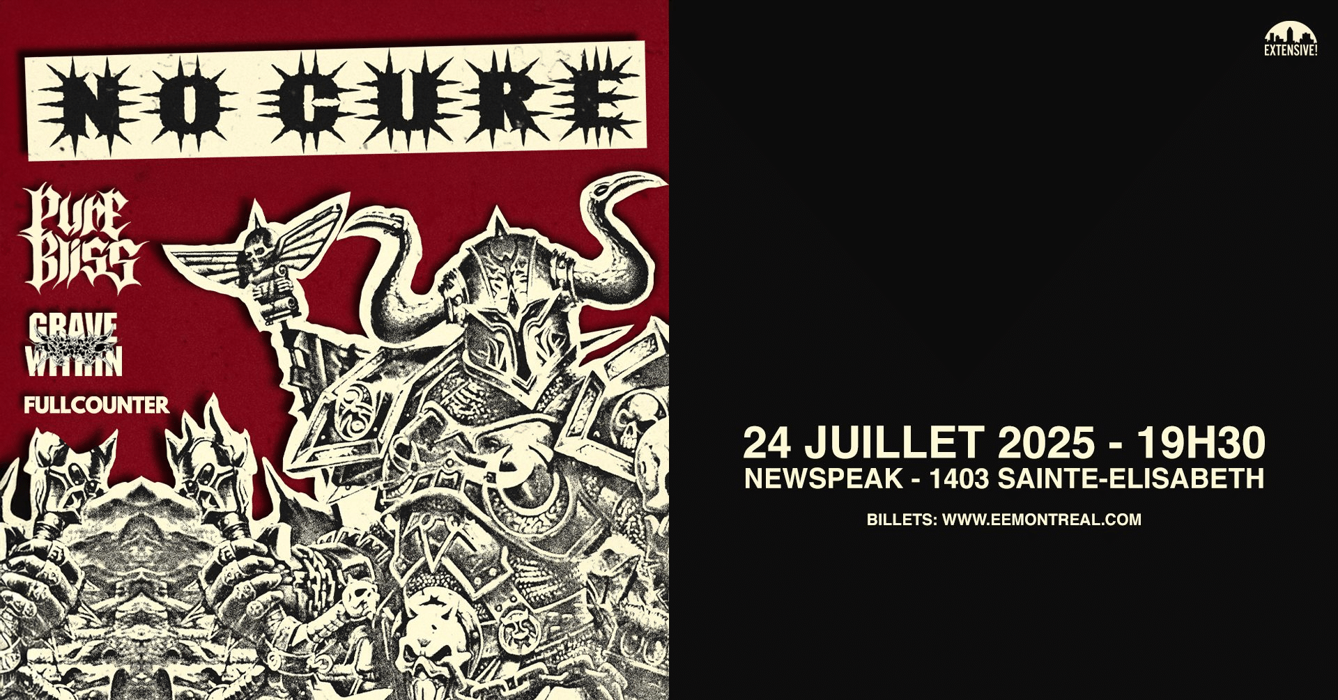 No Cure delivered a brutal and uncompromising performance that blended hardcore and death metal into a devastating live experience. Montreal was left in awe by their presence, their aggression, and their overwhelming sound.