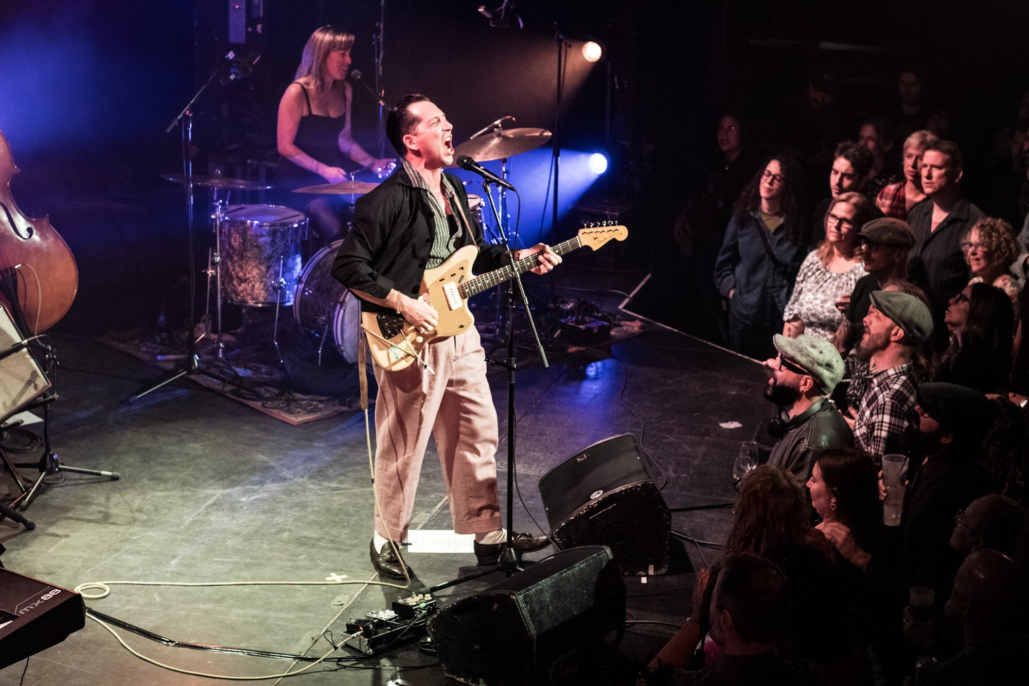 From his slicked-back hair down to his tasseled loafers, Pokey exuded all the warmth and sincerity of a 40s-style crooner with the musicality and energy of a modern-day rockstar. Opening with “So Long Chicago” from his latest album Rhumba Country was the perfect aperitif to wet our whistles. It was my first time seeing him, but I knew right away that it would be one of those shows where everyone knew all the words to each song and we would all sing along. And for those of us who didn’t, there were plenty of “La La La”s and “Aha”s to enjoy. Pokey had the sweetest grin, which grew larger throughout the night. Except for maybe when he sang “The Devil Ain’t Lazy,” which was one of my favourite moments. I was on the balcony taking photos, and he was quite a spectacle, standing on the edge of the stage yelling out warnings of the devil’s evil doings and then stomping his feet like mad.