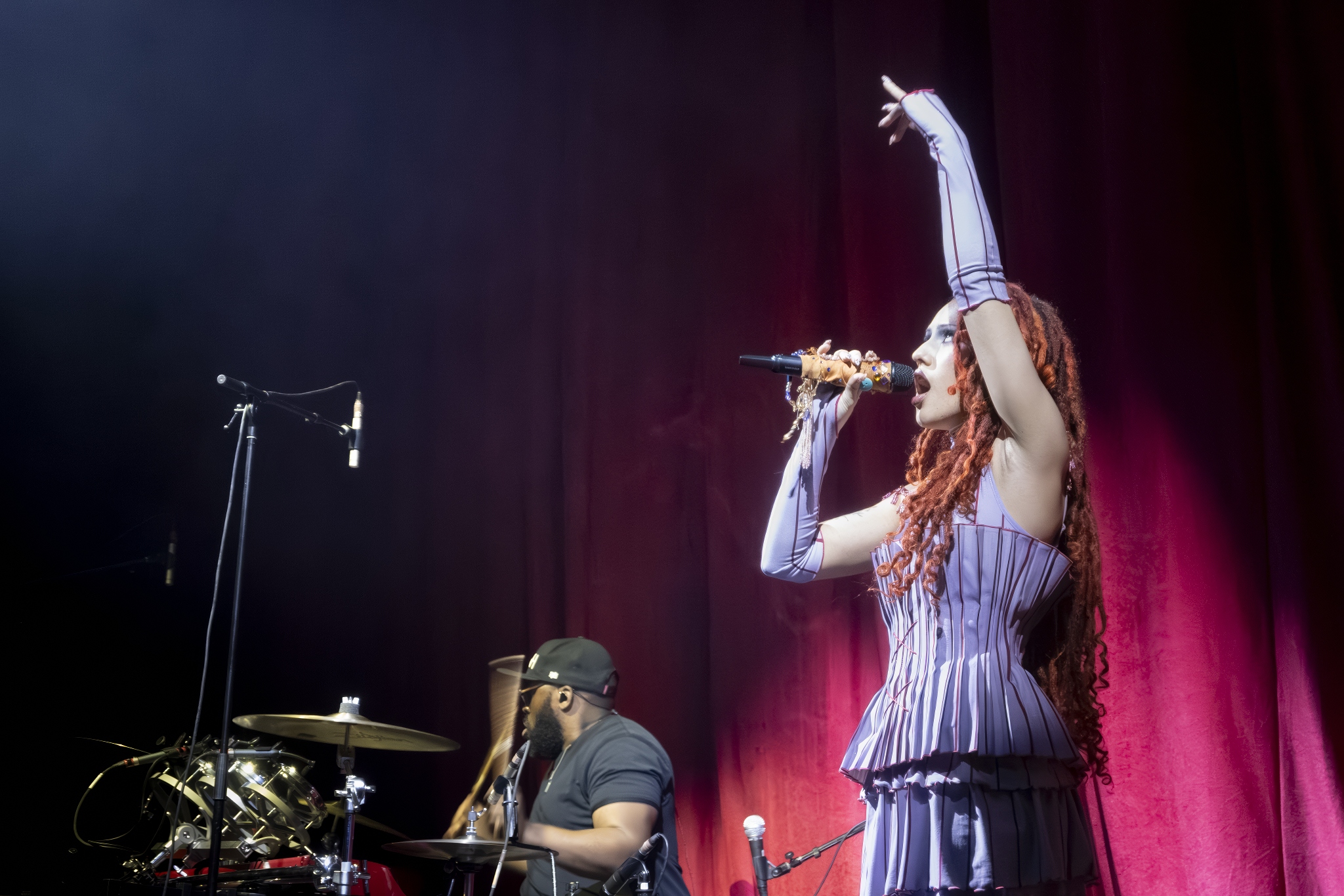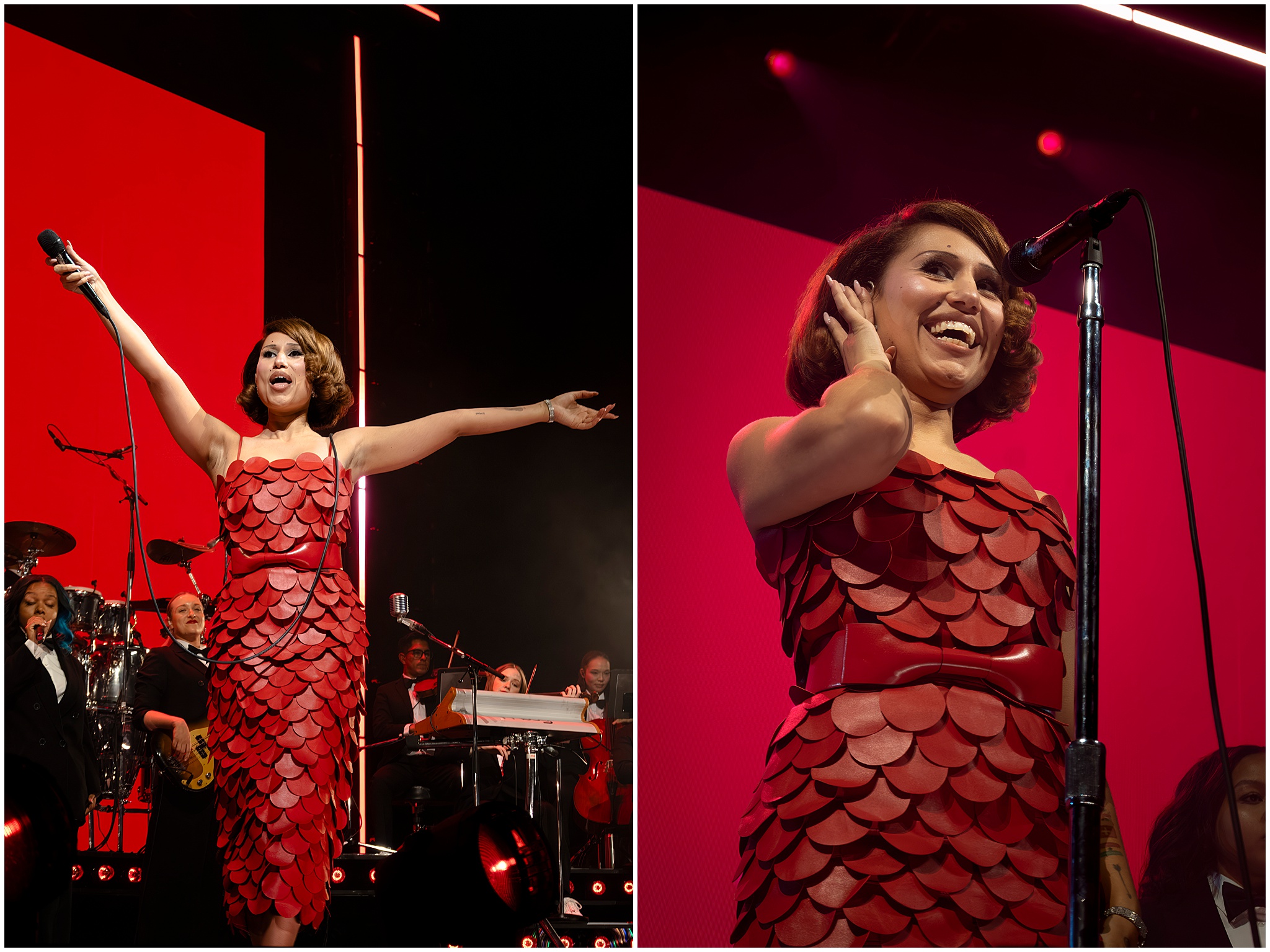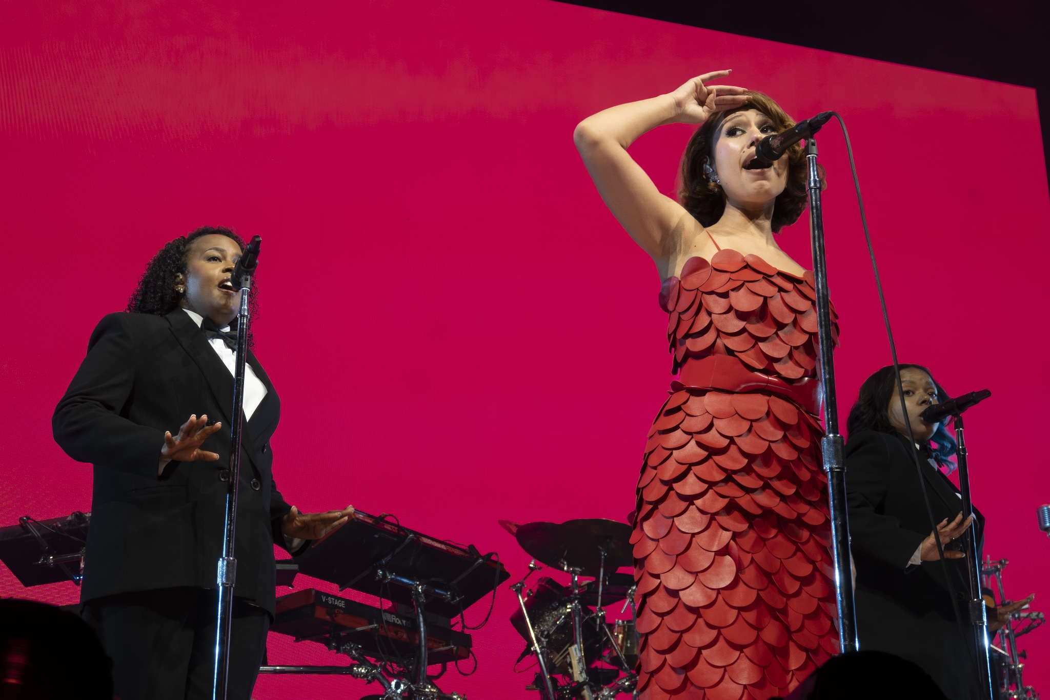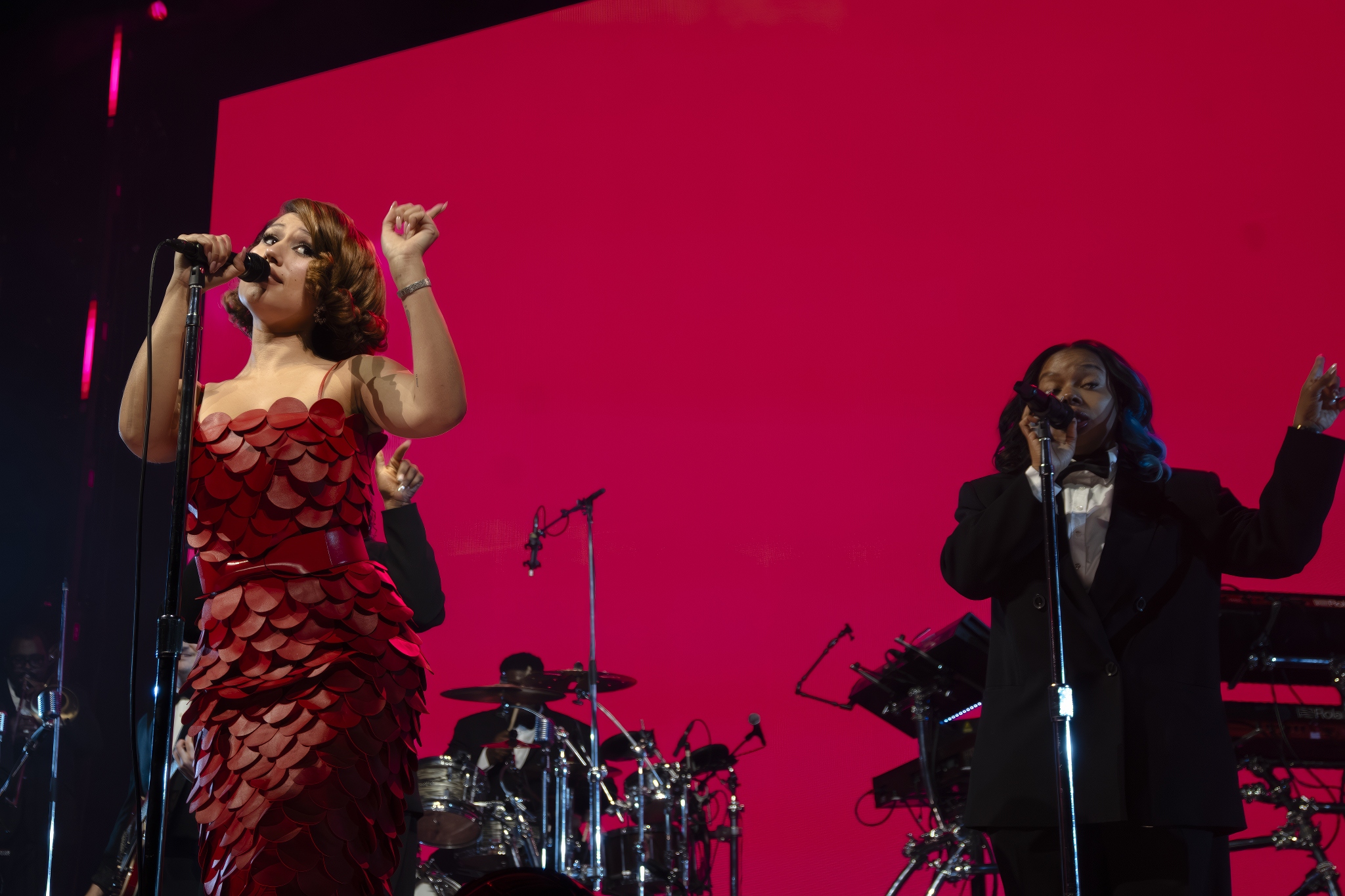 Backed by a full band with brass and strings, she moved between jazz, soul, and pop, mixing newer material with earlier songs and a jazz-leaning take on Fly Me to the Moon. The set stretched close to two hours, with quieter moments giving way to fuller, more arranged sections that leaned on the live musicians around her.