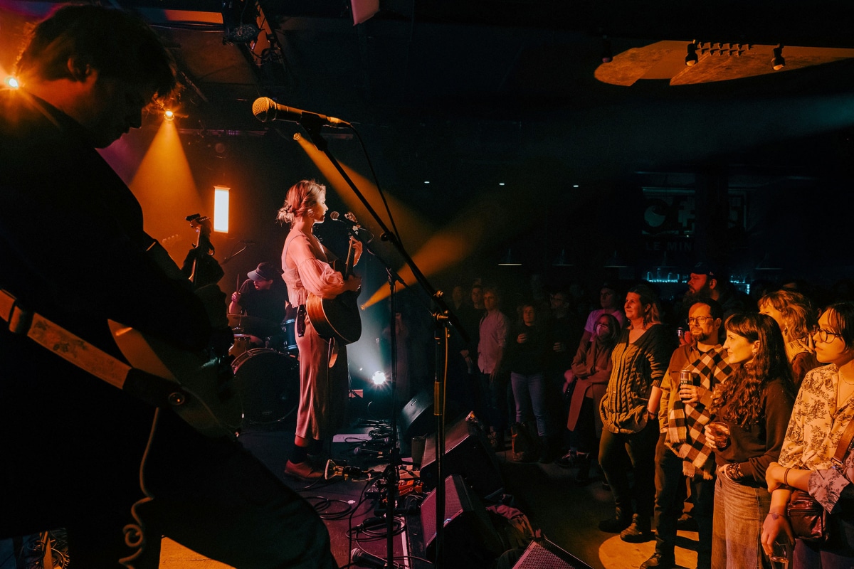A palpable energy thrummed through Montreal’s Le Ministère as the remnants of a snowstorm clung to the air. But the wintry weather couldn’t dampen the fervent anticipation for Shaina Hayes‘ release show for her sophomore album, “Kindergarten Heart.” The sold-out venue served as a testament to Hayes’ burgeoning magnetism, a musician steadily carving a unique space in the Canadian music scene.