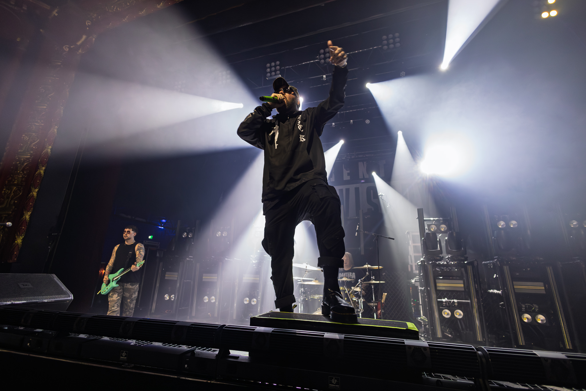 Attila kicked things off with a tight, energetic set that immediately got the crowd moving. Fans were clearly into it, feeding off the band’s signature party-meets-metal chaos. The only drawback? The lighting. It was so intensely bright and often directed outward that it made it difficult to actually see the band on stage. Still, that didn’t slow down the momentum in the room—if anything, the crowd compensated, bringing their own energy and keeping the pit alive.