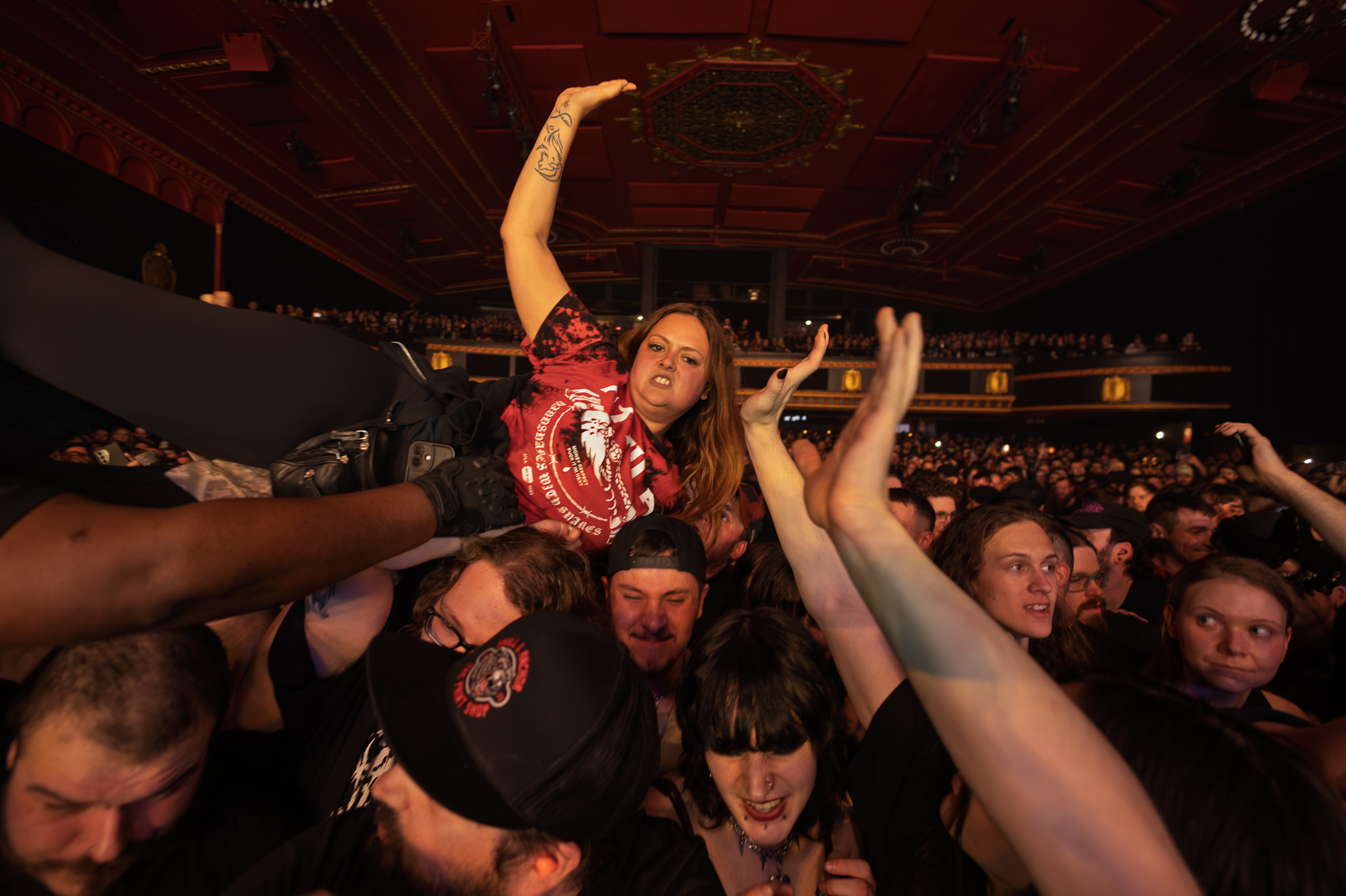 Whitechapel followed and elevated the intensity another notch. Their set felt darker, tighter, and more oppressive in the best way, with a commanding stage presence that locked the audience in. By the midpoint of their performance, the Olympia had fully transformed into a churning mass of bodies. The heat was rising fast, and the smell of sweat in the packed venue became impossible to ignore—but no one seemed to mind.