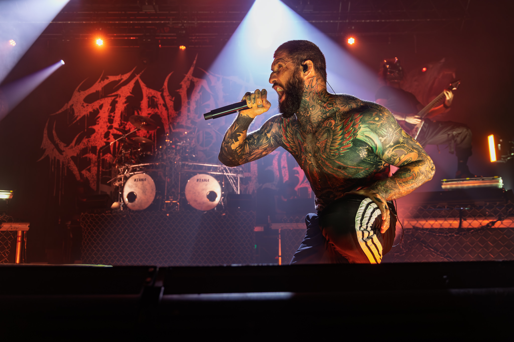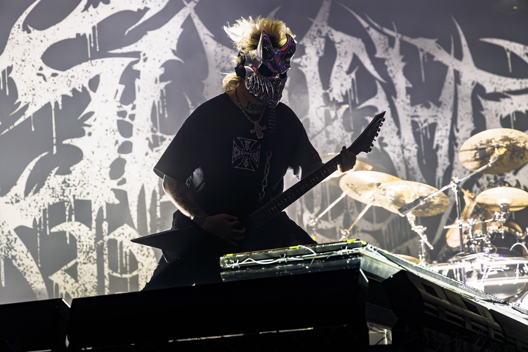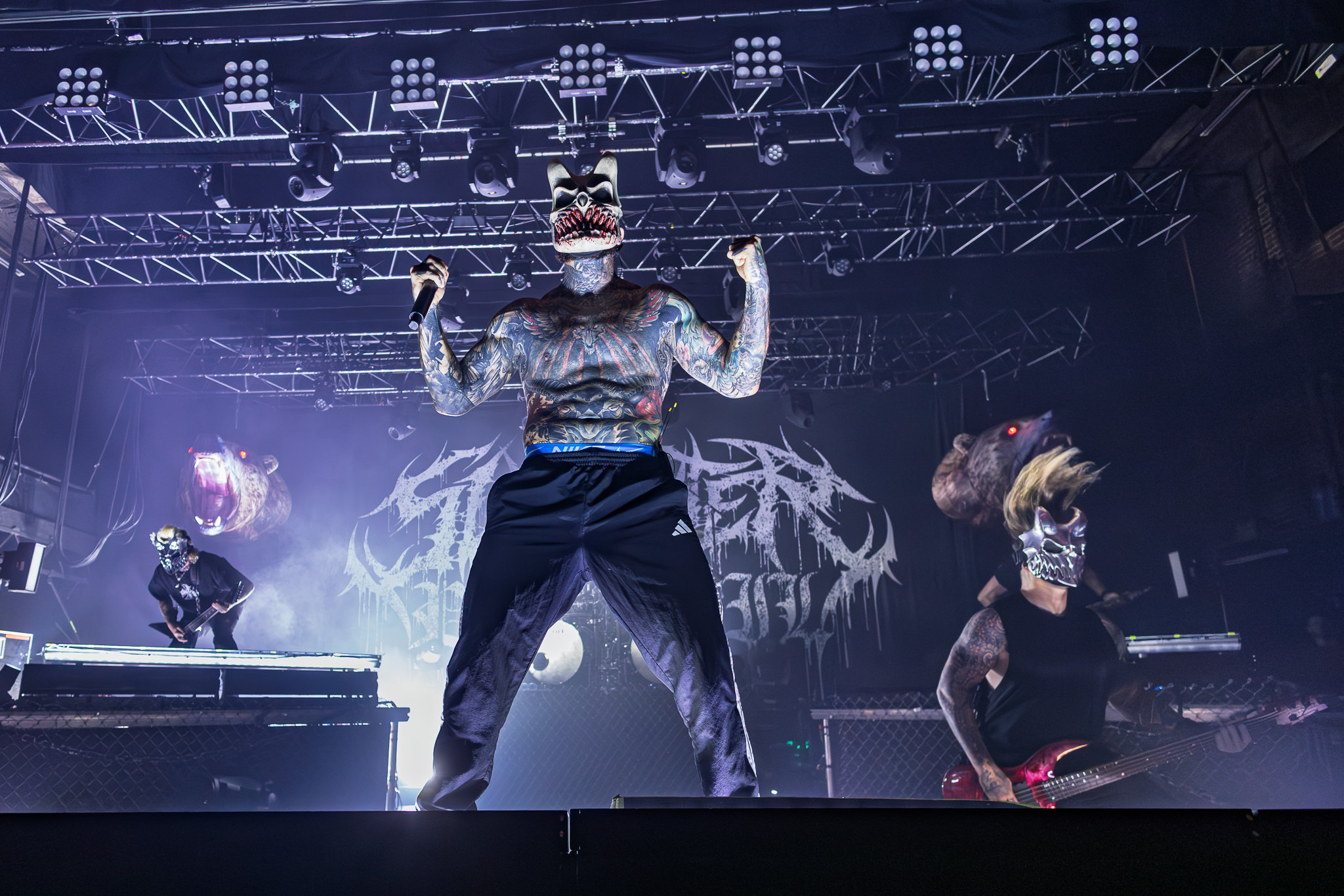 Then came Slaughter to Prevail, who delivered exactly what their reputation promises: a non-stop, crushing force of heavy music. Frontman Alex Terrible was a focal point from the second he stepped on stage, towering and intense, shifting between his signature demonic growls and eerily controlled low tones. His presence alone commanded attention, but it was amplified by the band’s now-iconic masks—grotesque, stitched, and menacing designs that added a theatrical, almost horror-like edge to the performance.
