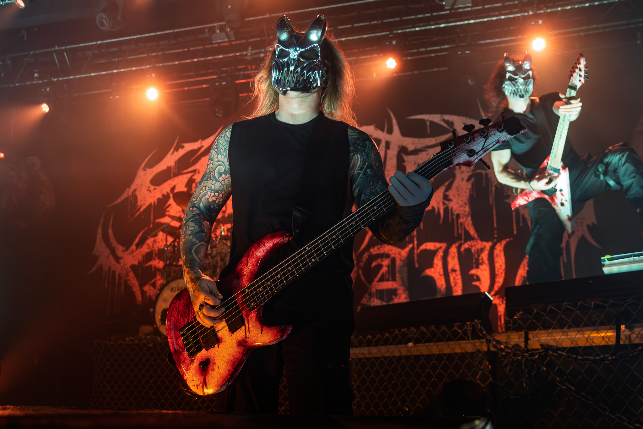 Opening with “Bonebreaker,” the band immediately sent the pit into overdrive. Tracks like “Baba Yaga” and “Demolisher” hit with devastating impact, each breakdown landing like a hammer as the crowd roared back every word they could. Alex stalked the stage between songs, at times engaging directly with fans, at others simply letting out guttural roars that felt more primal than human. The band’s visual identity, combined with their sheer sonic weight, made the set feel less like a concert and more like an assault.
