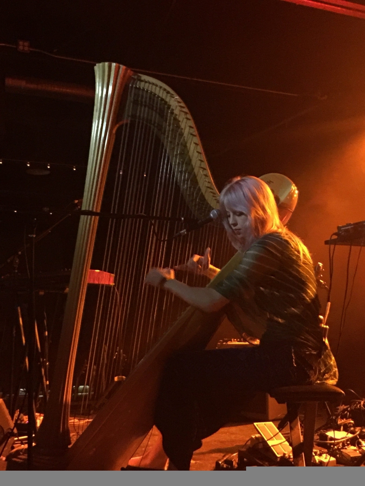 The evening started with Mikaela Davis, from Rochester New York, at the helm of a majestic harp.  I’m not that enthusiastic about the harp, apart from the Beer brand, so I wasn’t expecting much, to say the least.  As she started playing, it did feel like I was at the spa, but without warning, Mikaela’s voice, style and humorous banter was quite unexpectantly enjoyable.  She reminisced about missed opportunities to come up to Montreal to enjoy the lower drinking age.  Now 23, legal in her home country and touring with the Staves, she is catching up.  Once she plays, you soon forget about the harp, her voice taking over the musical lead.  It’s a combination that works remarkably well and the crowd filled the front of the stage, mesmerized.  Alas, her time was up, but it would not be the last we would see of Mikaela tonight.  After her set, I told her that her style of music should be called “Hip Harp”.  She didn’t find it as funny as I did, but she truly did make this instrument hip again.
