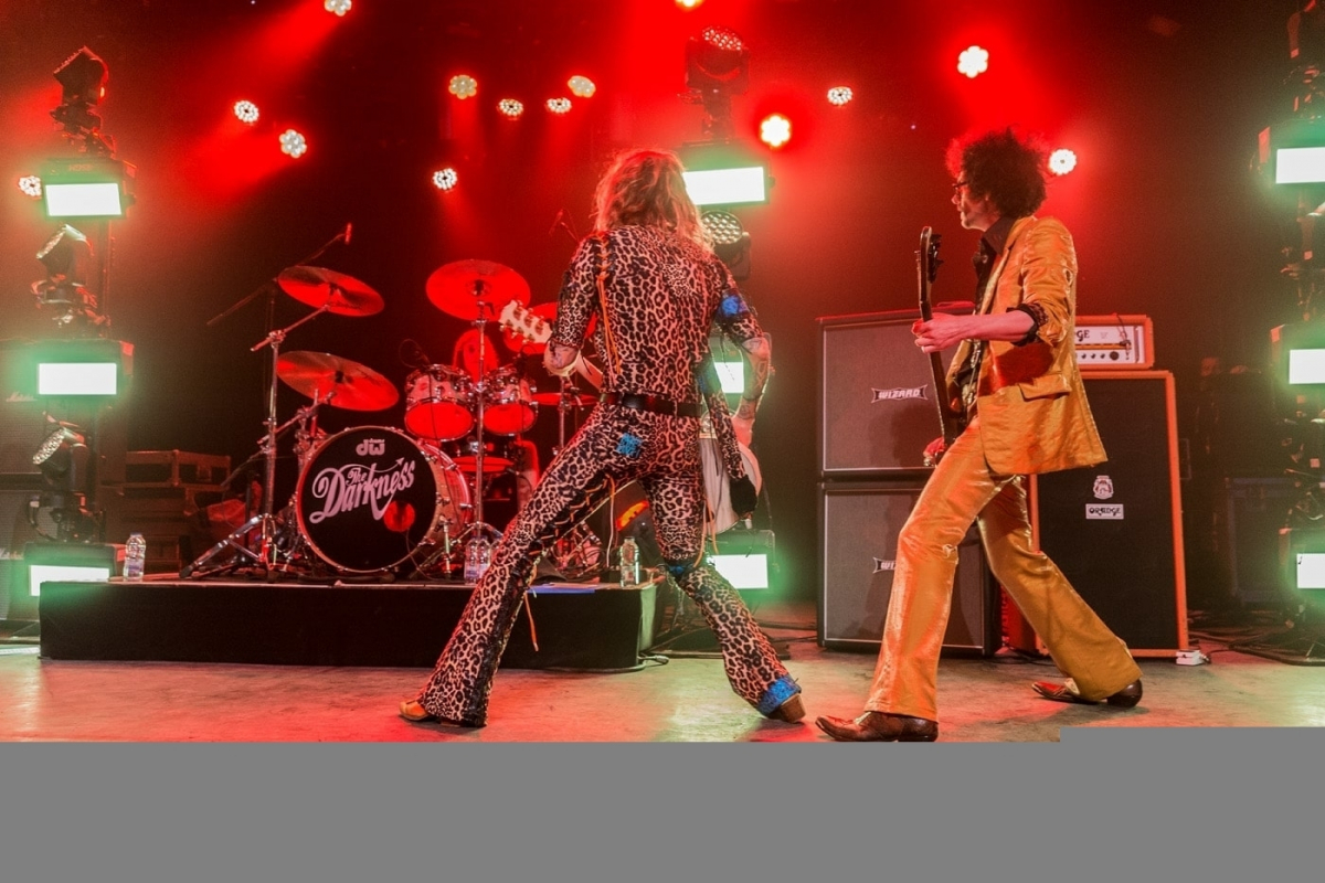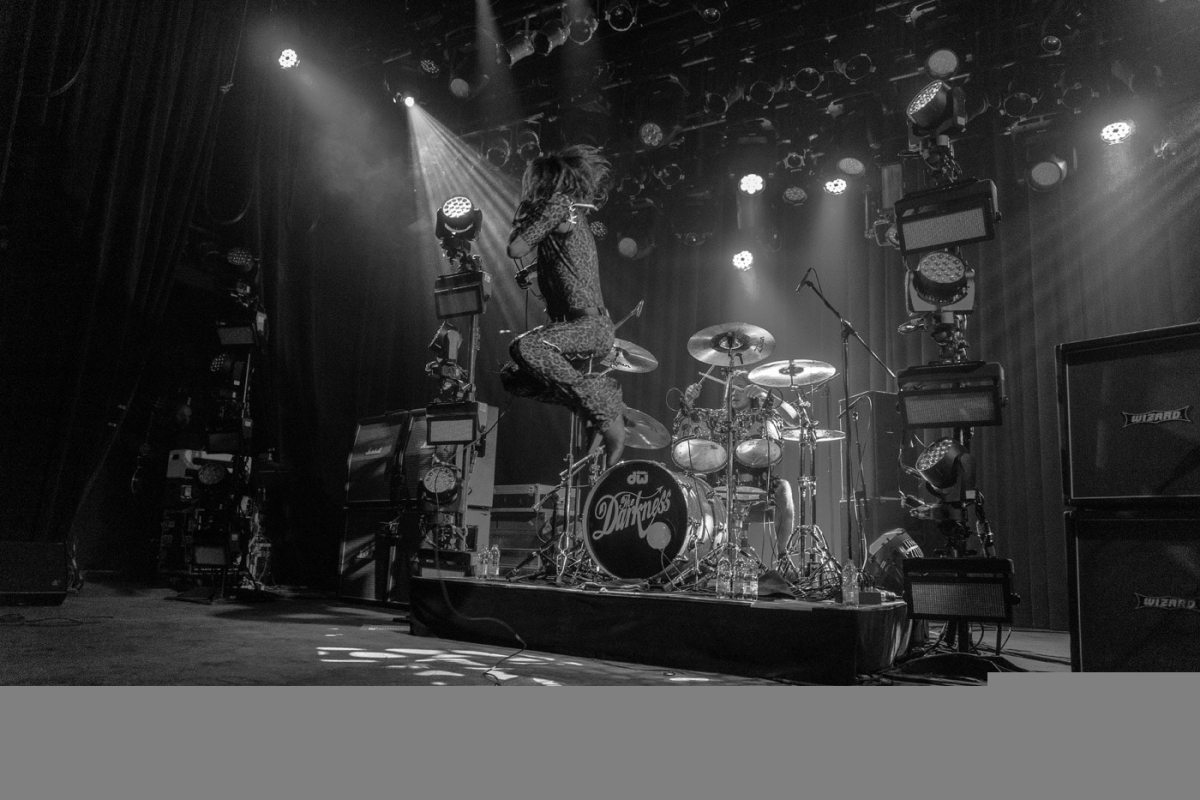 The setup of the stage, as well as the opening, set the tone for what was to be Rock n’ Roll night, filled with loud guitars, bright stage lights and a frontman that knew how to work a crowd. I felt as if I was witnessing the heirs of the torch passed down by the likes of Uriah Heep, Queen, ELO and even T-Rex. Each of those bands had left its mark on the style, music, and lyrics of The Darkness. Even the security guards, whom I had seen bored out of their minds during Dweezil Zappa’s marathonic show a few nights before, were headbanging and smiling.