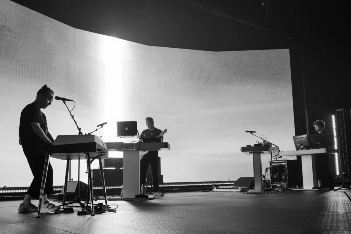 Things look almost Kraftwerk on Runwayaway as the three keyboard stands illuminate in a line, though the sound is immeasurably more industrial before The Clock manages to combine dub beats with guttural native chants, and a back screen that gets so bright the eyes start to sting! New song Traffic sounds massive, as Thom throws vocals into a box that subsequently loops them over and over as he roams the stage once more and busts out a few more trademark jerky dance moves. After the stage backdrop appears to explode, the song merges into Twist to conclude the main set, as strobe lights blare and then fade away to a simple piano, giving the feeling that we have reached our destination after this epic journey. The screen goes bright pink, and Thom and co. leave the stage to a standing ovation.