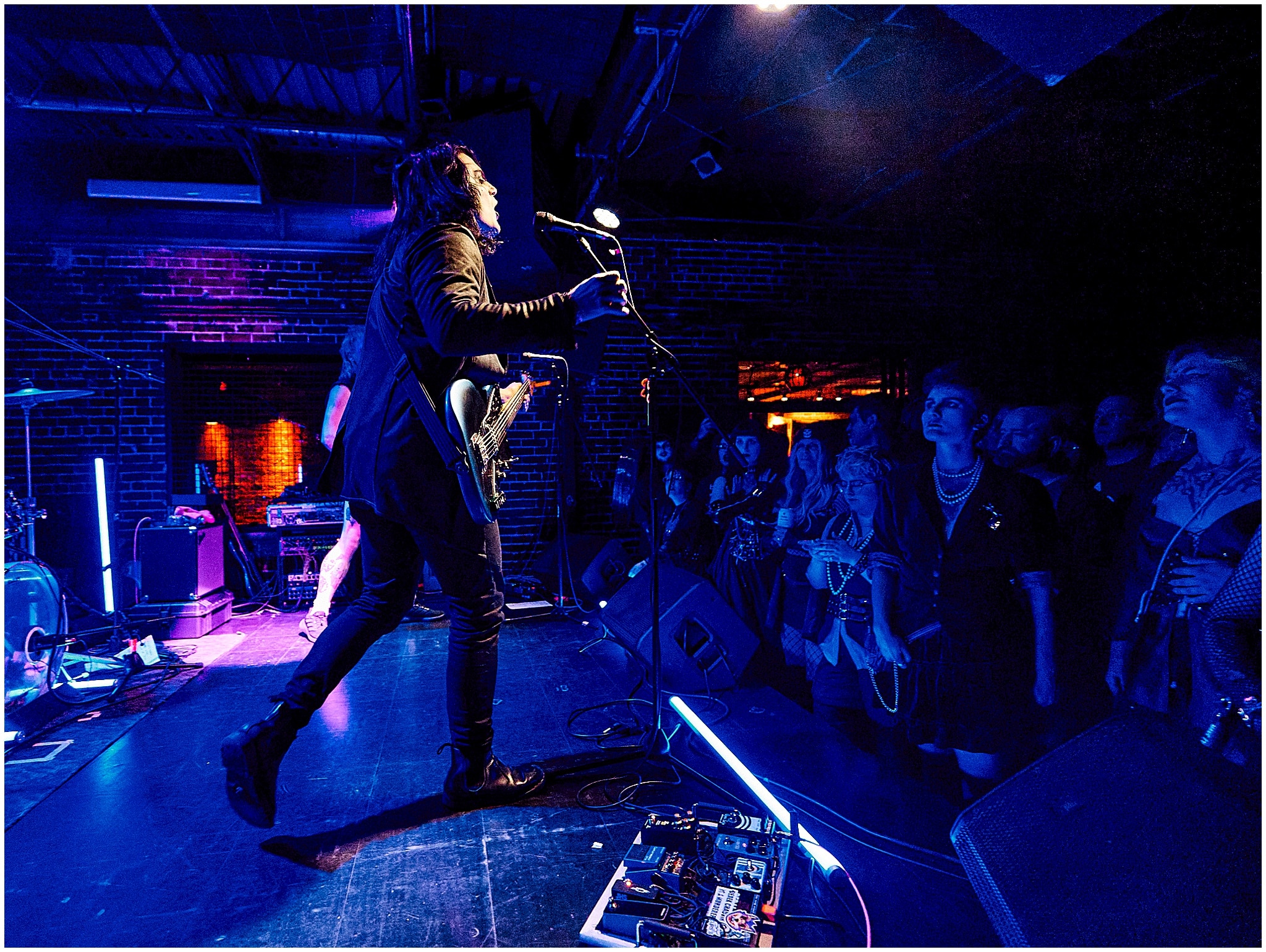 The evening then followed with Panic Priest, a perfect touring partner for Vision Video, carrying the same gothic synth-driven atmosphere. At first, I was a little disappointed that it was a one-man performance, with Jack Armondo handling vocals and guitar while relying on a computer for the instrumentals. Yet as the show progressed, his wild charisma drew me in, and soon I was dancing and swaying to the rhythms of his eighties-inspired new wave sound.